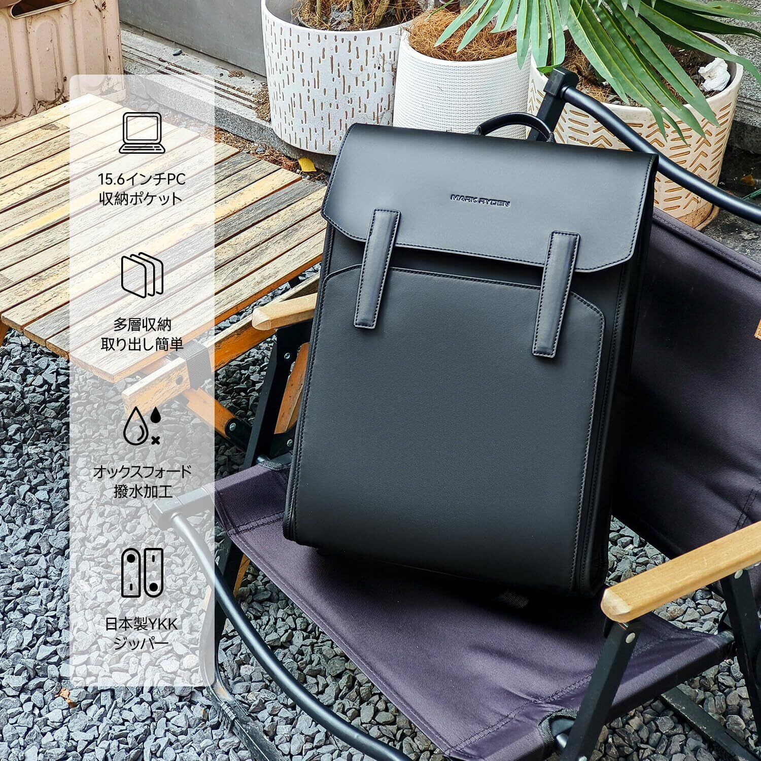 [MARK RYDEN] ビジネスリュック 軽量 2024年発売 リュックメンズ 撥水加工 15.6インチ ラップトッ 自立 スクエアバックパック A4 多機能 通勤 通学 出張 旅行 仕事 カバン