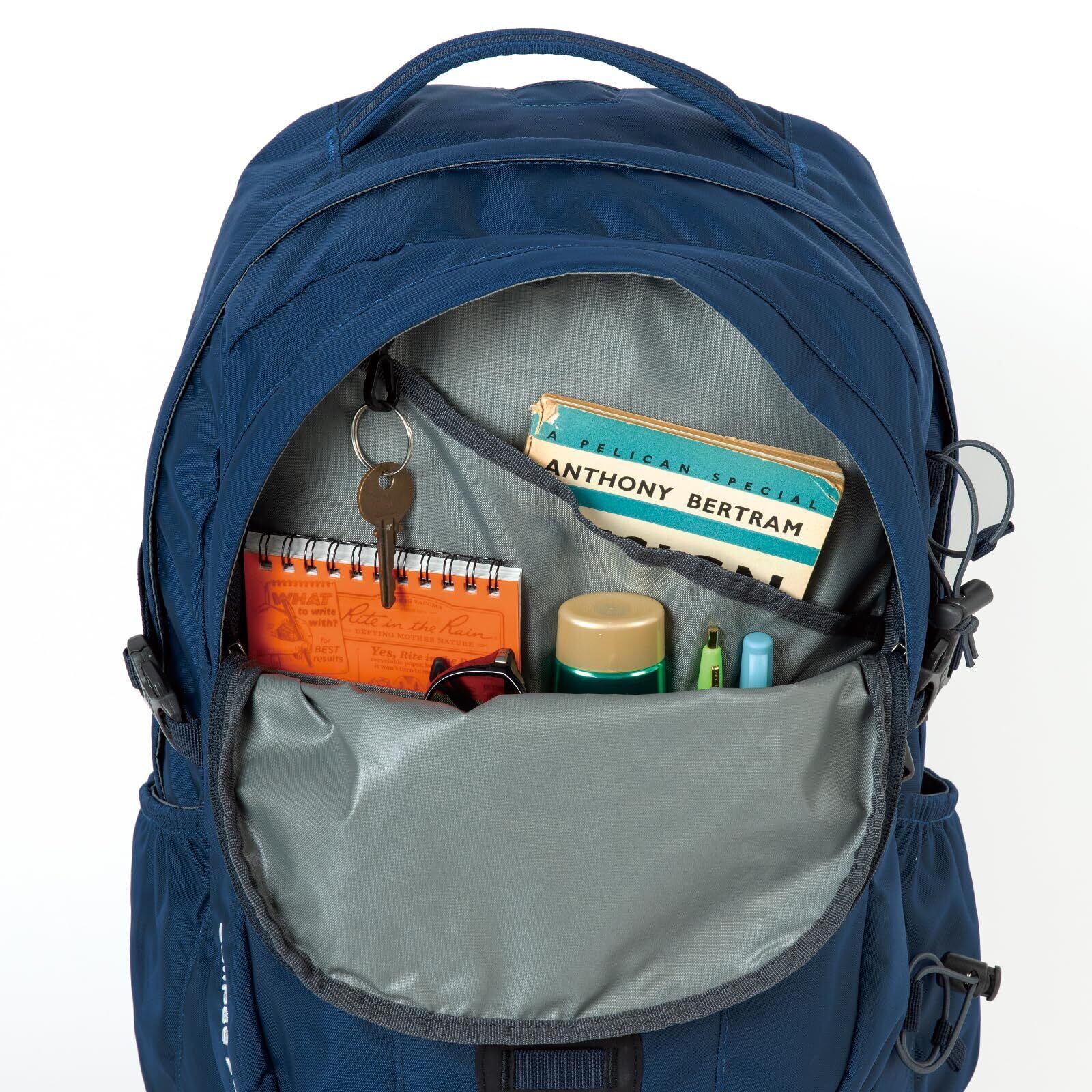 A4ファイルが楽に収納できるメインコンパートメントで、内部にはにはハイドレーションパックやPCを収納できるホルダーを装備。フロントポケット内部にはオーガナイザーも備え、充実した機能とシンプルな外観デザインでハイキングから日常使いにちょうどいいサイズのデイパック。