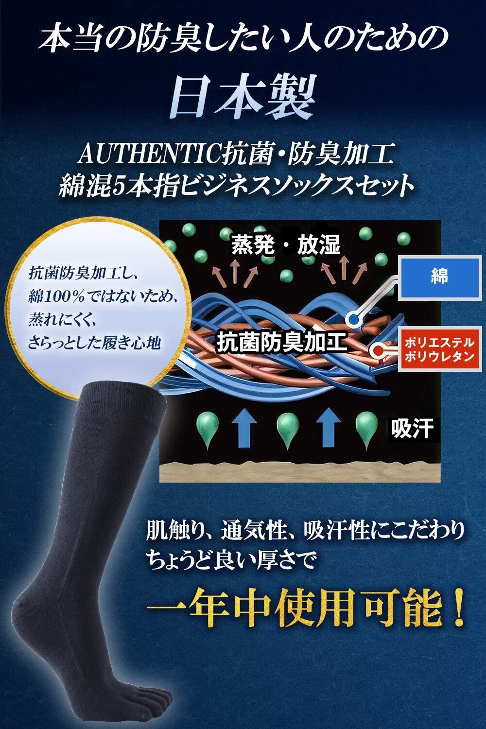[オーセンティック] 【 5本指ソックス 】 日本製 20時間履いても臭くならない 超防臭 バリア 抗菌 高通気性 吸汗 メンズ ビジネスソックス 5足セット