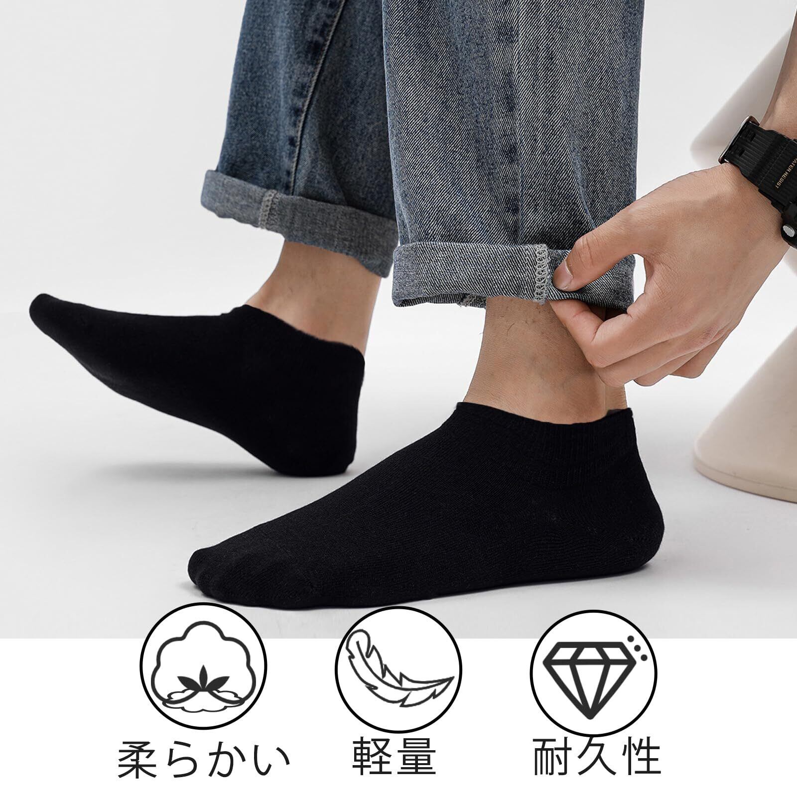 【足にぴったりフィット】伸縮性のあるリブ編みの袖口により、袖口は足首で十分な伸縮性がありながら、きつすぎません。つま先とかかとは一体型の縫い目で設計されており、かかとと靴の摩擦を軽減するため、長時間歩いても疲れにくく。
