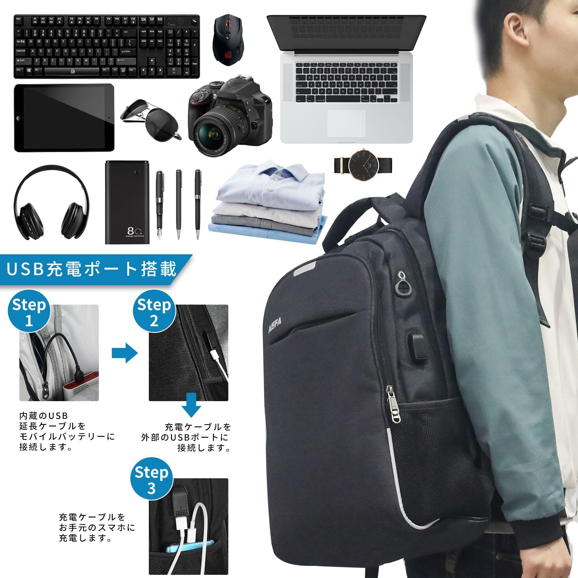 [AISFA] リュック メンズ リュックサック PCバック ビジネスリュック 大容量 ラップトップ バックパック USB充電ポート イヤホン穴付き アウトドア 旅行 男女兼用