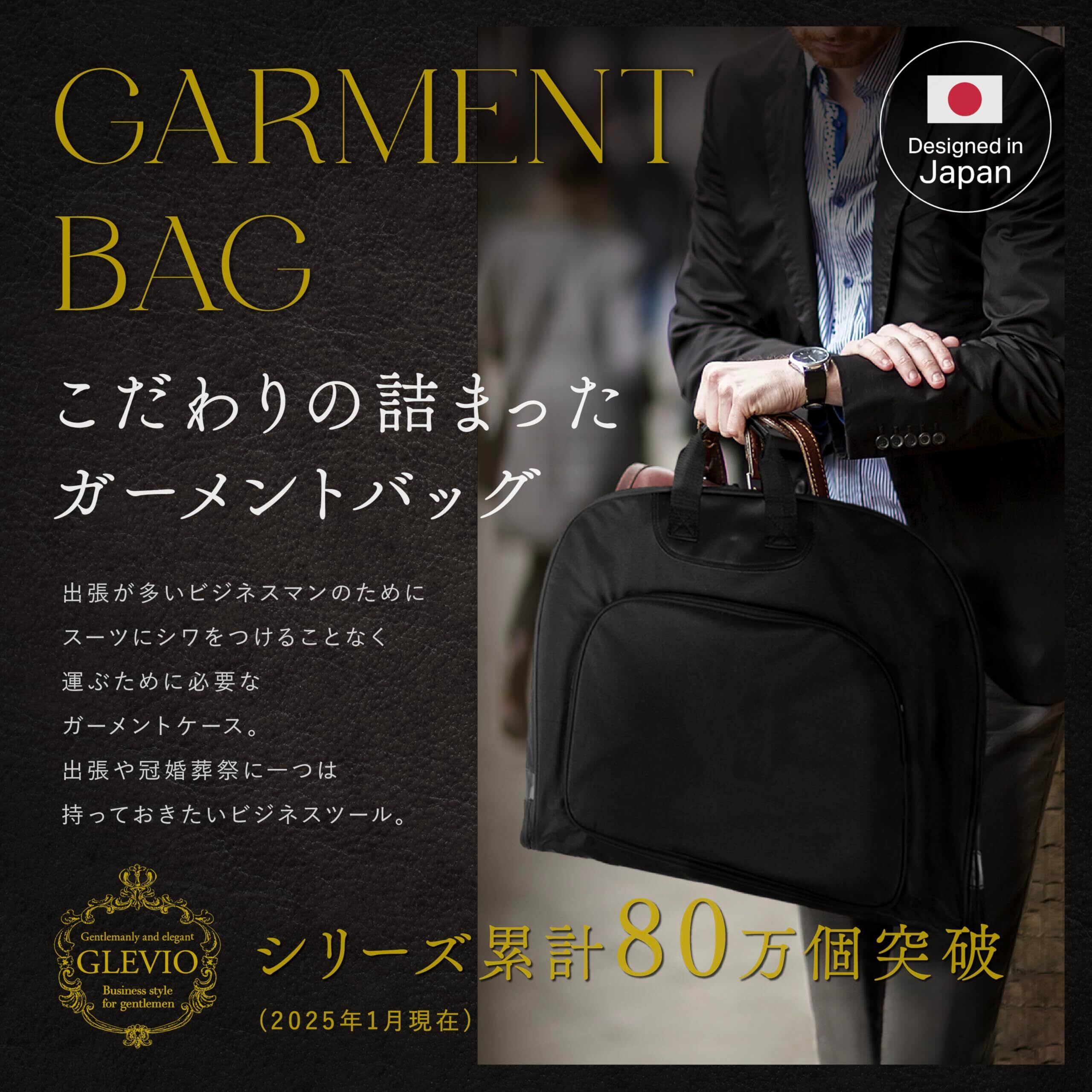 [グレヴィオ](日本ブランド) 靴が入る前ポケット付き【選べる1着用 or 2着用】 ガーメントバッグ 防水 靴 靴収納 型くずれ防止 ポケット付き ハンガー ハンガー付き 1着用 2着用 ガーメントケース ブラック 冠婚葬祭 出張 スーツ 持ち運び
