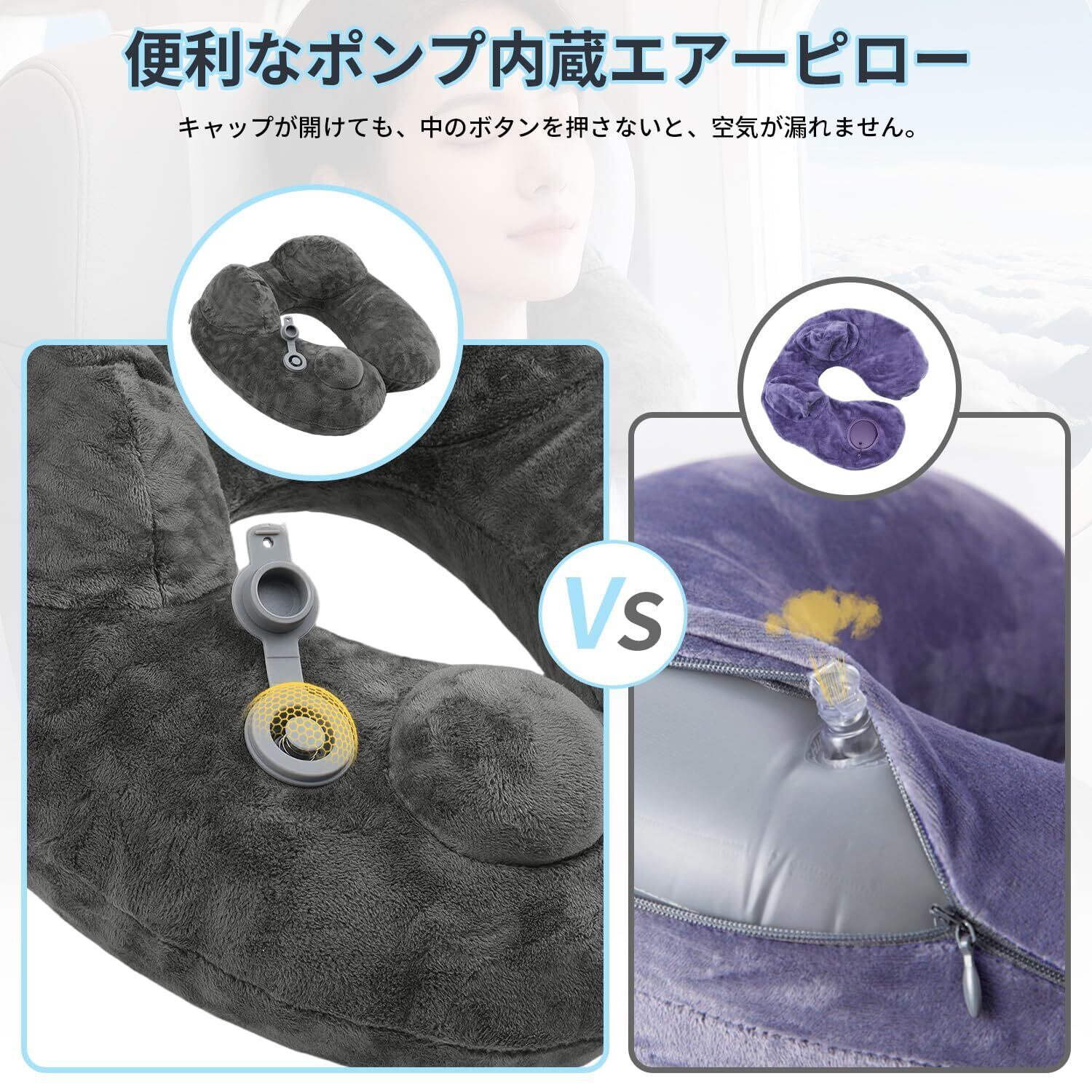 ✈【肌触り抜群】表面は繊維で作られており、柔らかいマイクロベルベットの肌触りが特徴です。毛玉ができず、縮みもなく、心地よい眠りをサポートする必須ネックピローです。内部は高弾性PVCライナーで作られており、信頼性、耐久性、気密性に優れています。インフレータブルバルブには過圧保護装置が装備されており、シール性能を強化し、破裂を防ぎます。カバーは水洗いができるので、快眠グッズとして、とても衛生的です。