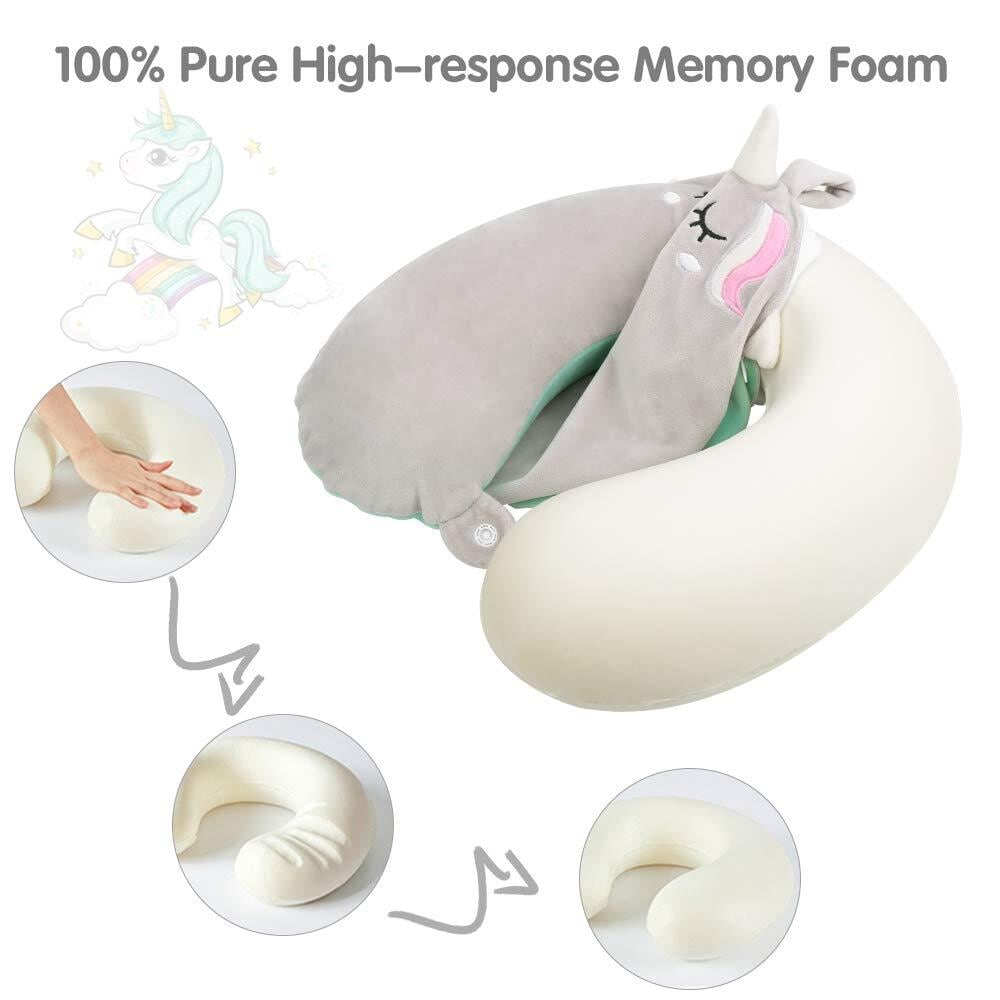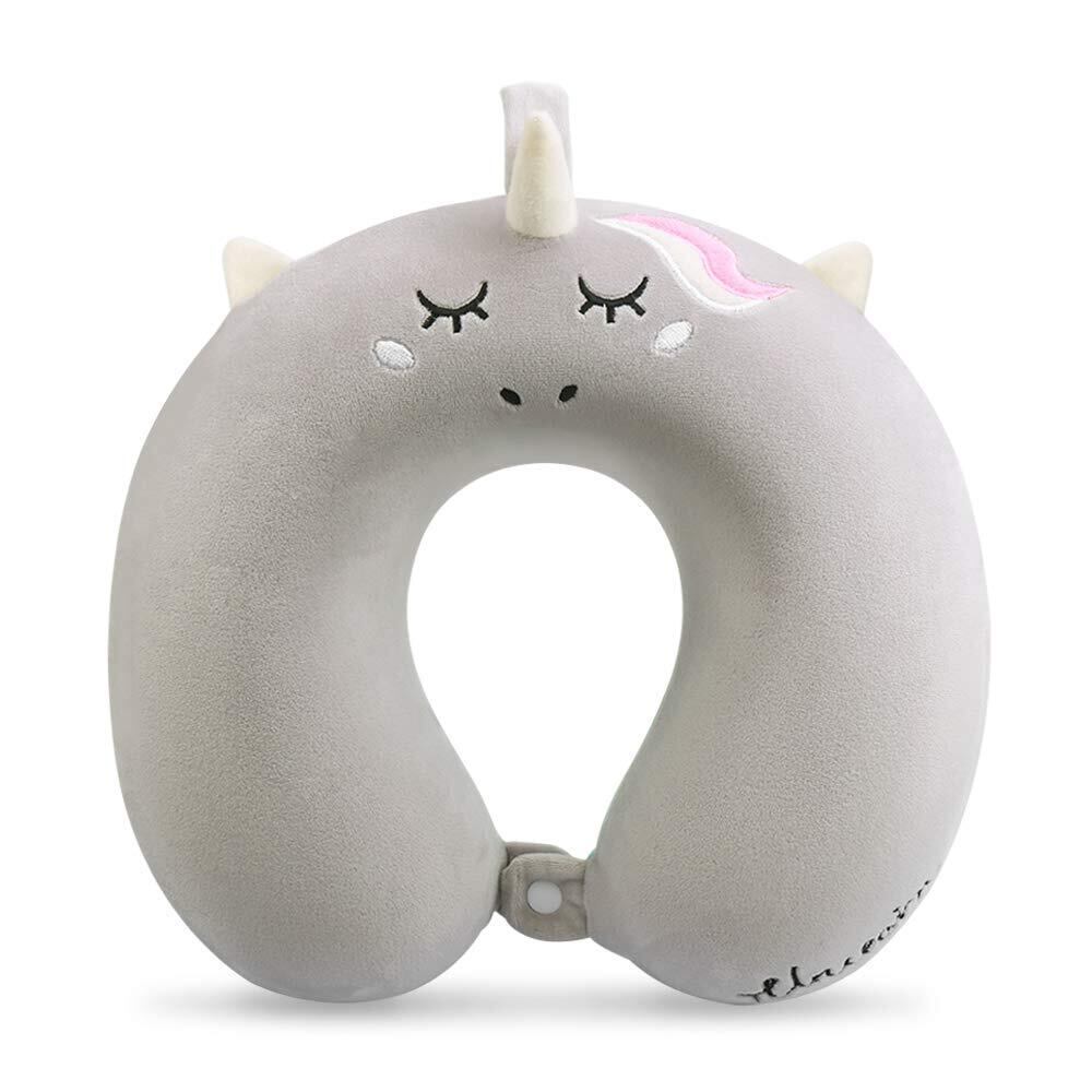 子供用トラベルピロー ユニコーン メモリーフォーム 旅行用ネックピロー スナップ付き U字型 飛行機 車 フライト 頭 首 サポート枕 洗えるカバー付き 大人 幼児 子供 男の子 女の子へのギフト (グレー)