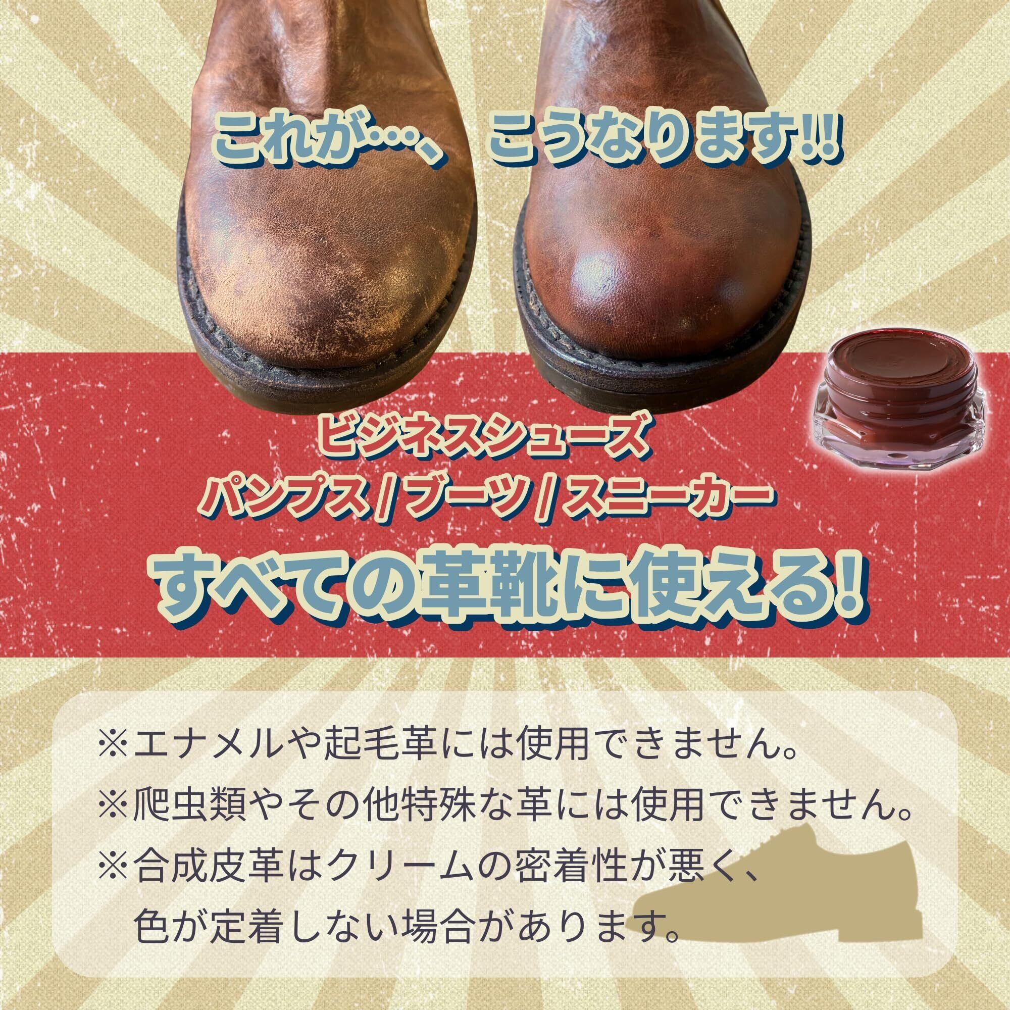 革靴のキズや色ムラを補修するクリームです。隠ぺい性が高いクリームで綺麗に仕上がります。