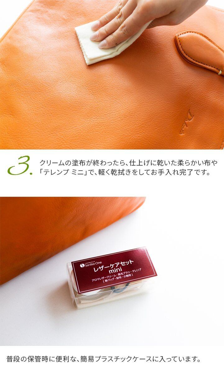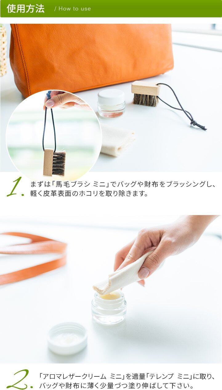 [コロンブス] レザーケアキット 革財布・バッグ・革小物ケア3点セット アロマレザークリーム ミニ テレンプ ミニ 馬毛ブラシ ミニ CL-CARESET2