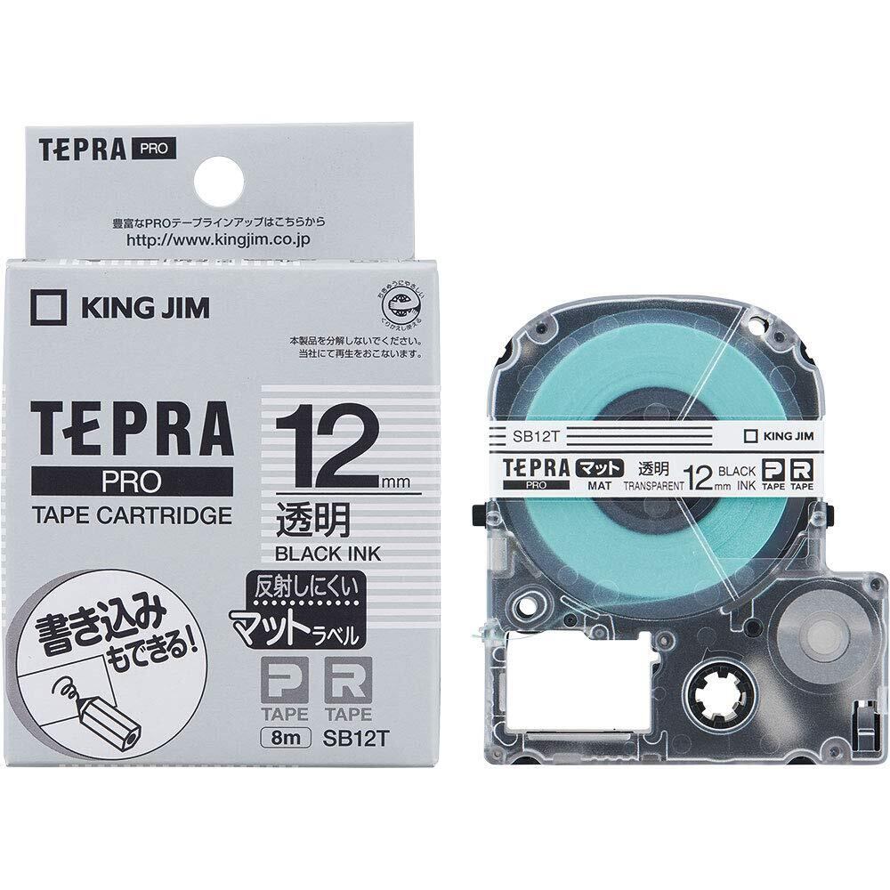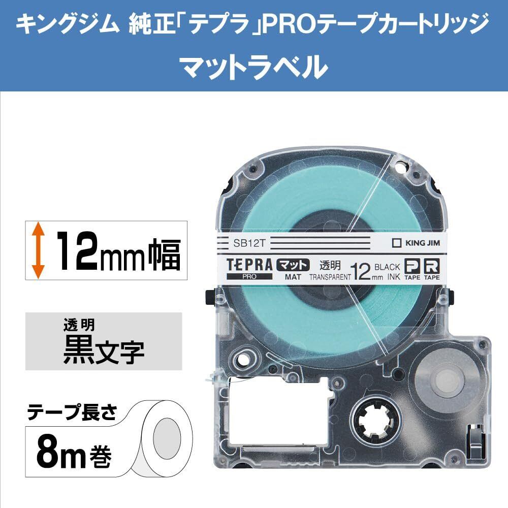 キングジム 【純正】 テプラPROテープカートリッジ マット 12mm 透明ラベル/黒文字 長さ8m SB12T