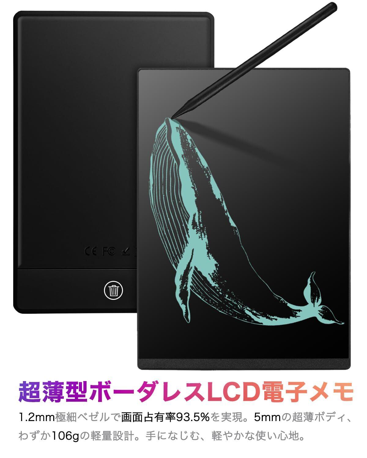 電子メモパッド デジタルノート 9.5インチ 超薄型 0.5mm極細線幅 ワンタッチ消去 ロック機能付き マグネット式ペン収納 誤操作防止 電池交換可能 電子手帳 筆談ボード 電子ペーパー ボード 伝言板 学生 勉強 ビジネス 業務用
