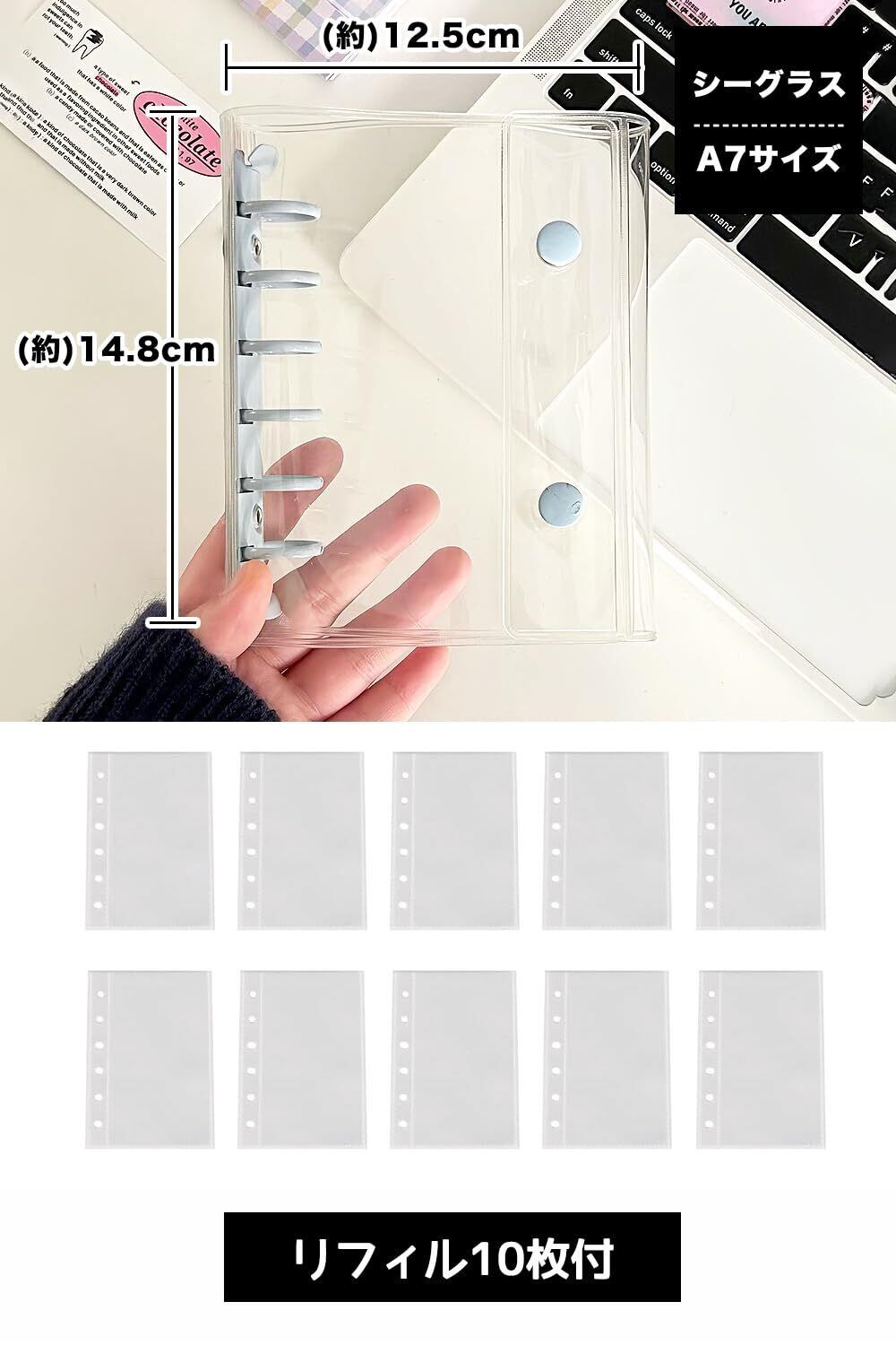 シール帳 バインダー 透明 A7 【リフィル10枚付】 台紙 6穴 女の子 男の子 シール収納 推し活グッズ(A7/シーグラス)