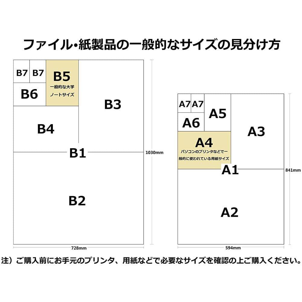 ※ファイルの収容枚数の表示は、PPC用紙64g/㎡を使用し、収容寸法1mmあたり10枚で算出しております。そのため、紙の種類によっては必ずしも計算通りにならない場合がありますので、一応の目安としてご利用ください。