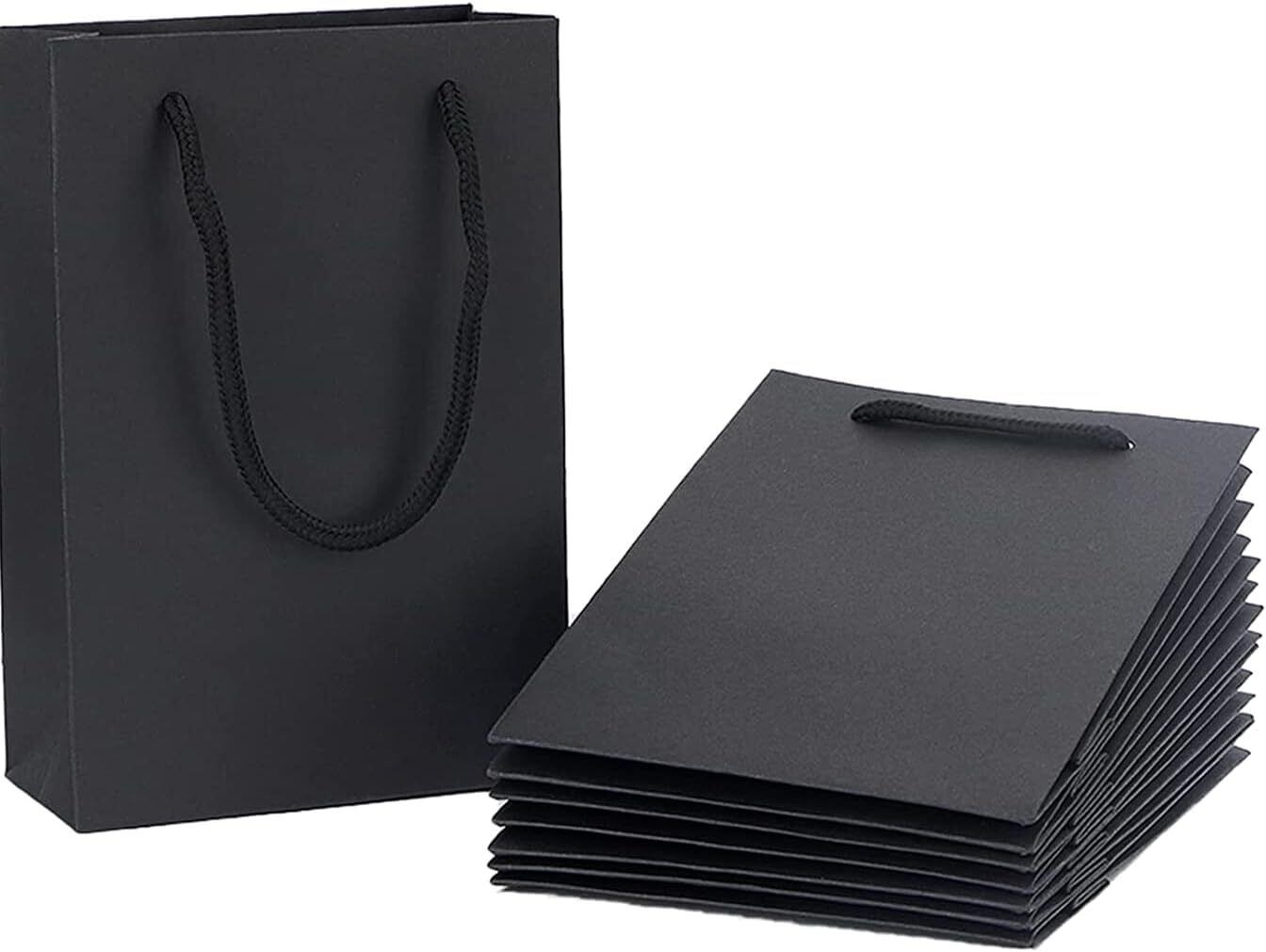 紙袋 手提げ プレゼント袋 ギフトバッグ 小 引き出物袋 縦型 おしゃれ 厚手タイプ 丈夫で耐久性があり 再利用可能 クラフト紙袋 結婚式 包装 パーティー 誕生日 ホワイトデー 贈り物 お土産 クリスマス用ギフトバッグ(15*6*20cm・8枚セット・黒)