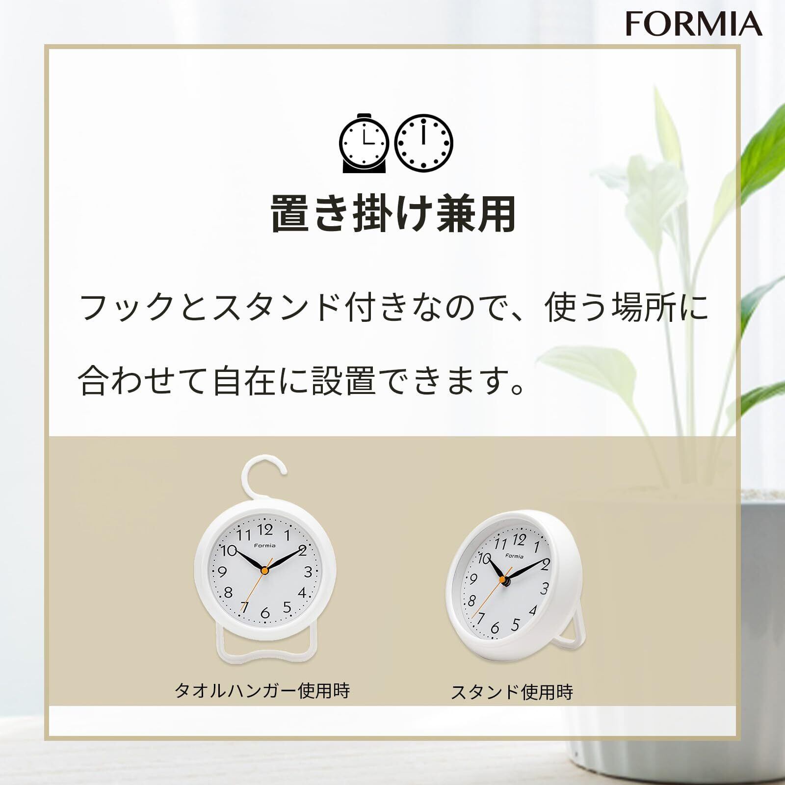 Formia(フォルミア) バスクロック 防水 大画面 お風呂用 キッチン用 壁掛け時計 置き掛け兼用 アナログ タオルハンガー 保土ヶ谷電子販売 ホワイト HWP-001S-WH