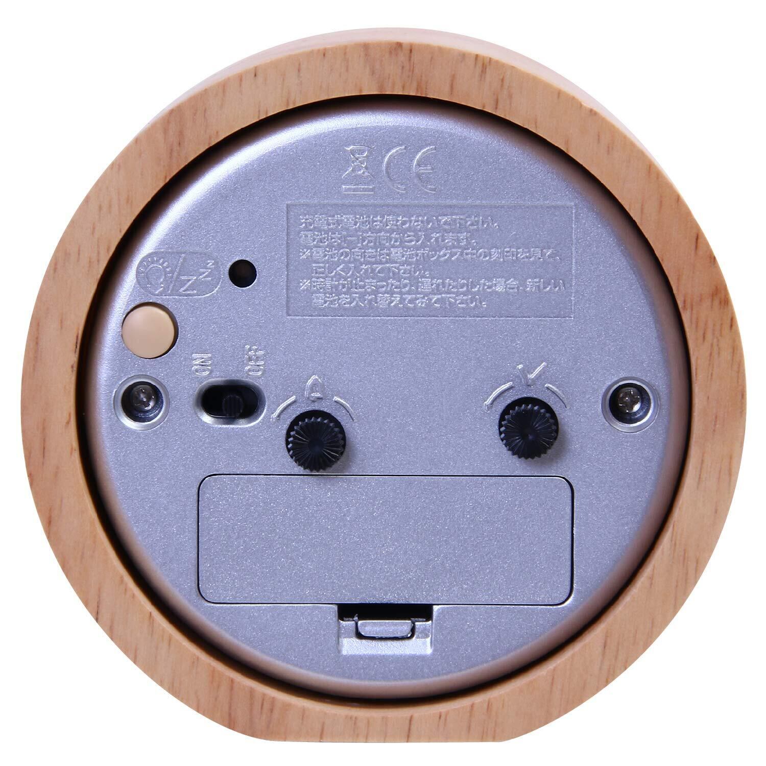 不二貿易(Fujiboeki) 置き時計 目覚まし時計 アナログ 幅10.2cm ナチュラル 天然木 静音式 アラーム付き ライト付 卓上 ラウンド ウッド 36699