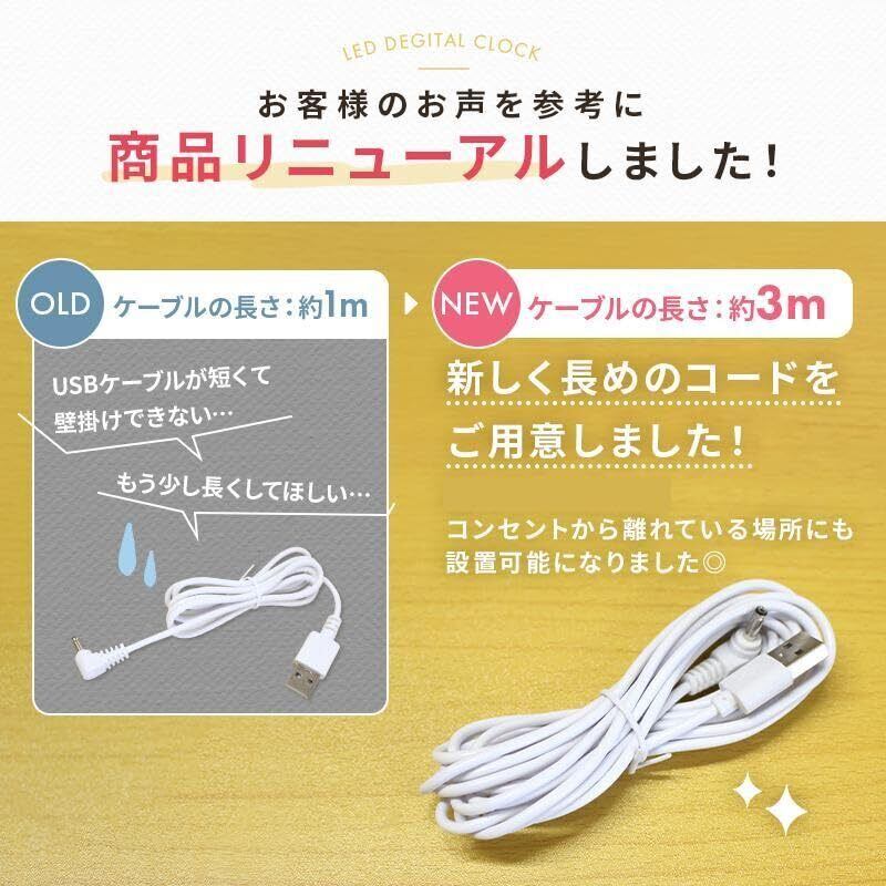 【ケーブル長さが3mに進化】従来の1mから3mへ改良。コンセントから離れた場所にも設置でき、より自由なレイアウトが可能に。