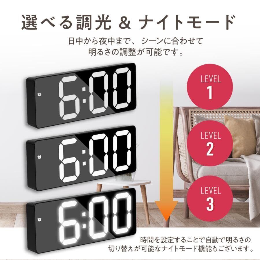 目覚まし時計 【3Mコード付き】 デジタル時計 置き時計 日本語説明書付き LED LED時計 卓上 おしゃれ 温度 タイマー 光る インテリア リビング 寝室 プレゼント (ブラック×ホワイト(黒面))
