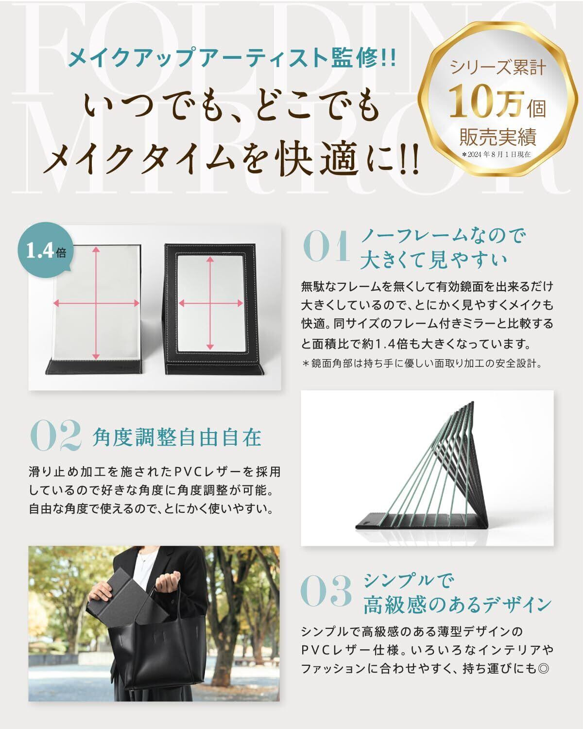 WIDREAM【メイクアップアーティスト監修】角度自在調整&他社より1サイズ大きい鏡面の折りたたみ折立鏡 鏡 卓上鏡 スタンドミラー コンパクトに折りたたんで持ち運びにも◎(役立つメイクminiブック付属) (黒, ML)
