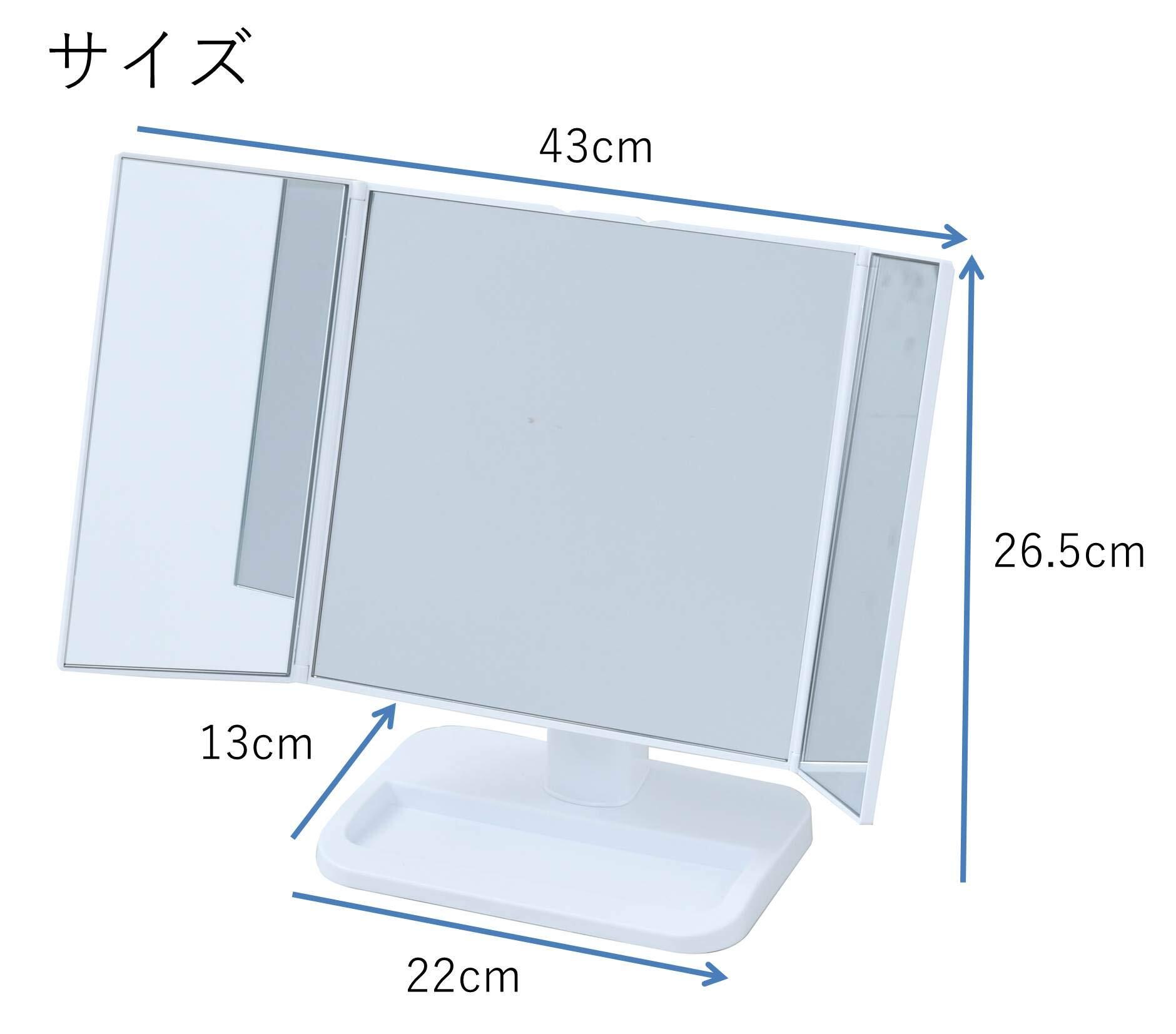 山善(YAMAZEN) 卓上三面鏡 幅43×奥行13×高さ26.5cm ホワイト PM3-4326(WH)