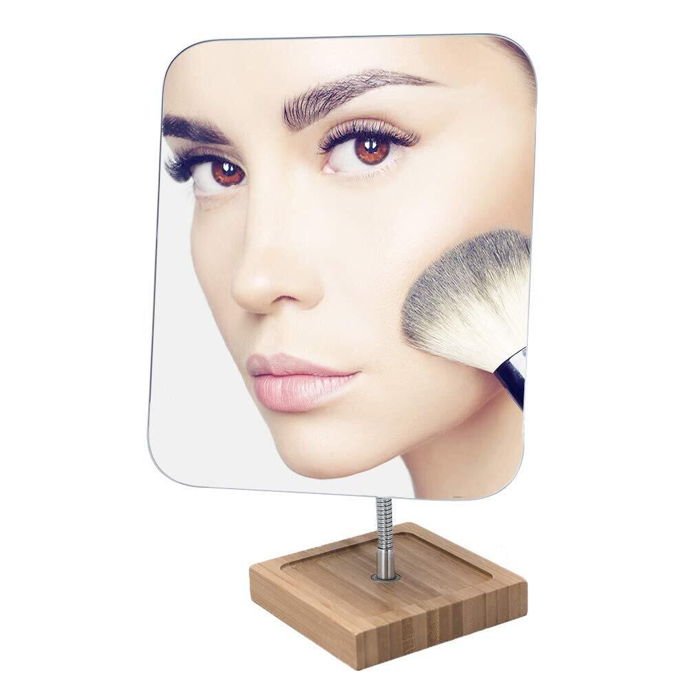 建設 - 拡大のない片面正則長方形化粧鏡。鏡 卓上ガラスのサイズは約7.6 x 6.3インチです。鏡 卓上は、竹のベース、ガチョウの首とクリア鏡 卓上面で構成され、鏡 卓上面は変形していないと真の美しさを復元します。