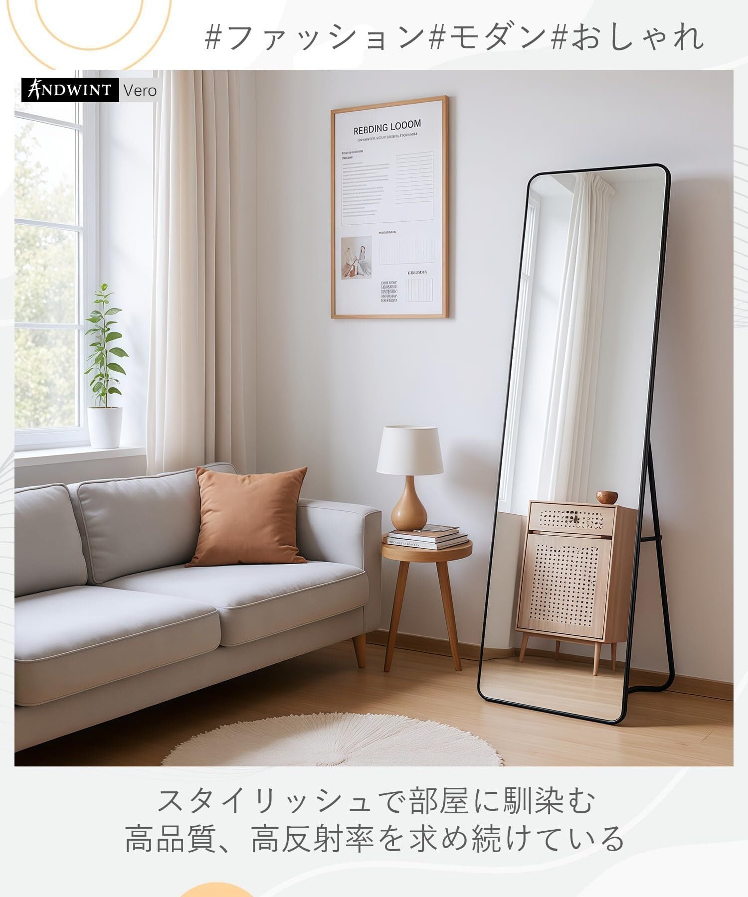 【高品質にこだわった鏡】フレームは高品質素材を採用し、軽量と頑丈を兼ねて、耐久性はもちろん、姿見鏡自体にも「フロートガラス層」「保護層」「反射層」「酸化防止層」四層加工され、従来品とは違い、品質を求め続けている姿見鏡です。