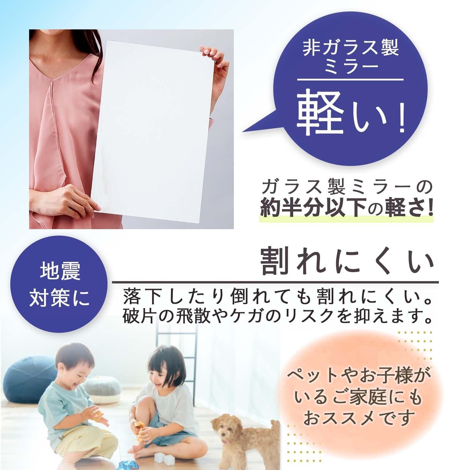 コモライフ 貼るだけ簡単軽量ミラー 1枚 (40×26cm) 壁に貼る 鏡 アクリル ウォール ミラー 割れにくい 地震対策