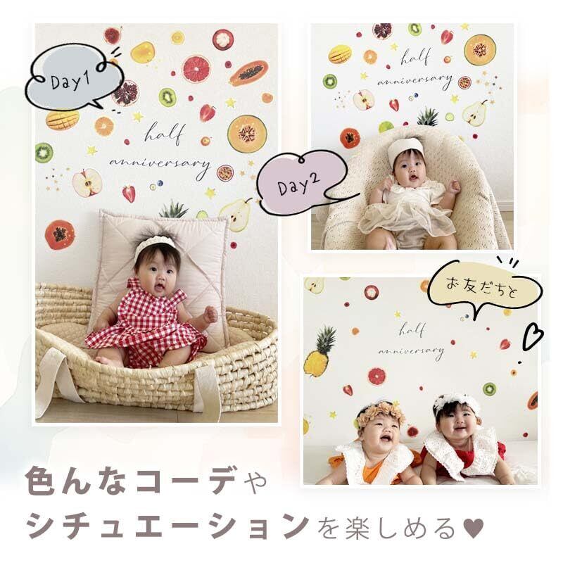 スクウェアショップ ウォールステッカー ハーフカットフルーツ A4×8枚 w0033 誕生日 飾り フルーツ フェイク 果物 半分 ハーフバースデー ハーフ 6か月 バースデー ギフト 受注印刷