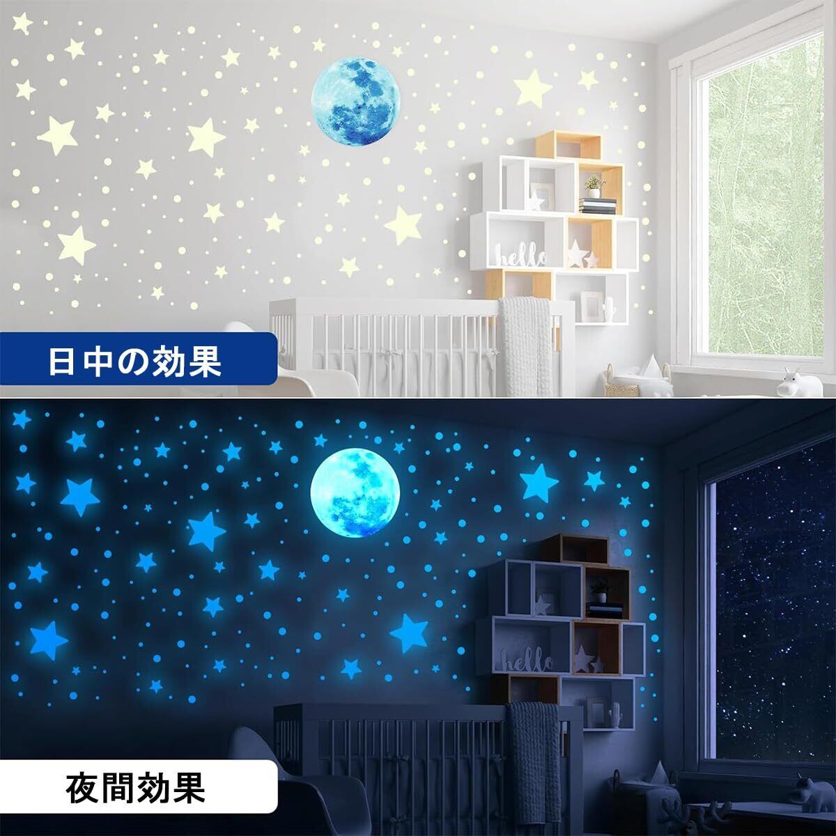 夜光シール 星空セット 蓄光効果 星 月 流星 光るウォールステッカー 繰り返し使える 子供部屋装飾 窓用 DIYインテリア 壁面装飾用 幼稚園 保育園 家の装飾品 子供誕生日ギフト(青色の光)