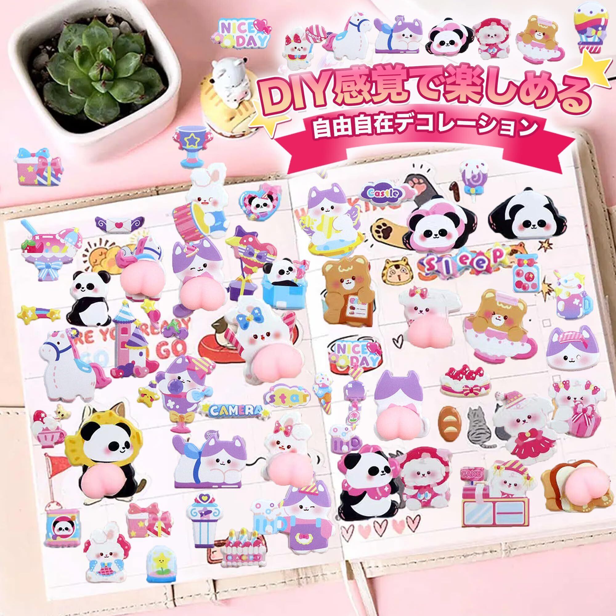 【2026年人気急上昇 シール交換2枚入り】ぷくぷくおしり 3D立体 ぷにぷに むにむに デコステッカー ごほうびシール 手帳 スマホ DIY 日記帳 女の子 子供 大人 プレゼント (2枚セット)