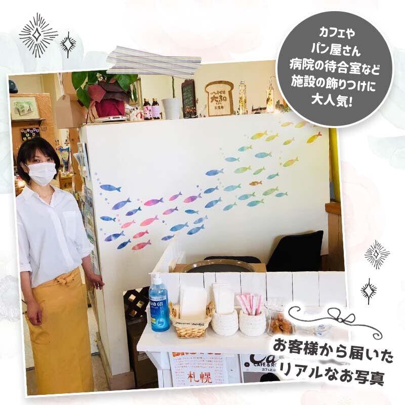 スクウェアショップ ウォールステッカー いにしえの魚群 w0187 魚 海 水族館 飾り かわいい 装飾 飾りつけ 男の子 女の子 アクアリウム 子供部屋 和柄