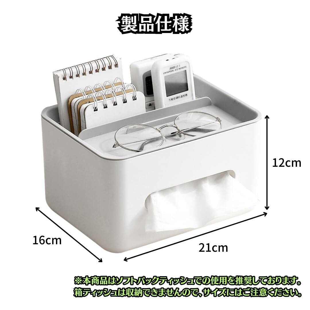 【製品仕様】サイズ(約):21cm×16cm×12cm 重量:265g 素材:PP ※本商品はソフトパックティッシュ用のサイズとなっております。箱ティッシュは収納できませんので、ご購入の際にはご注意ください。