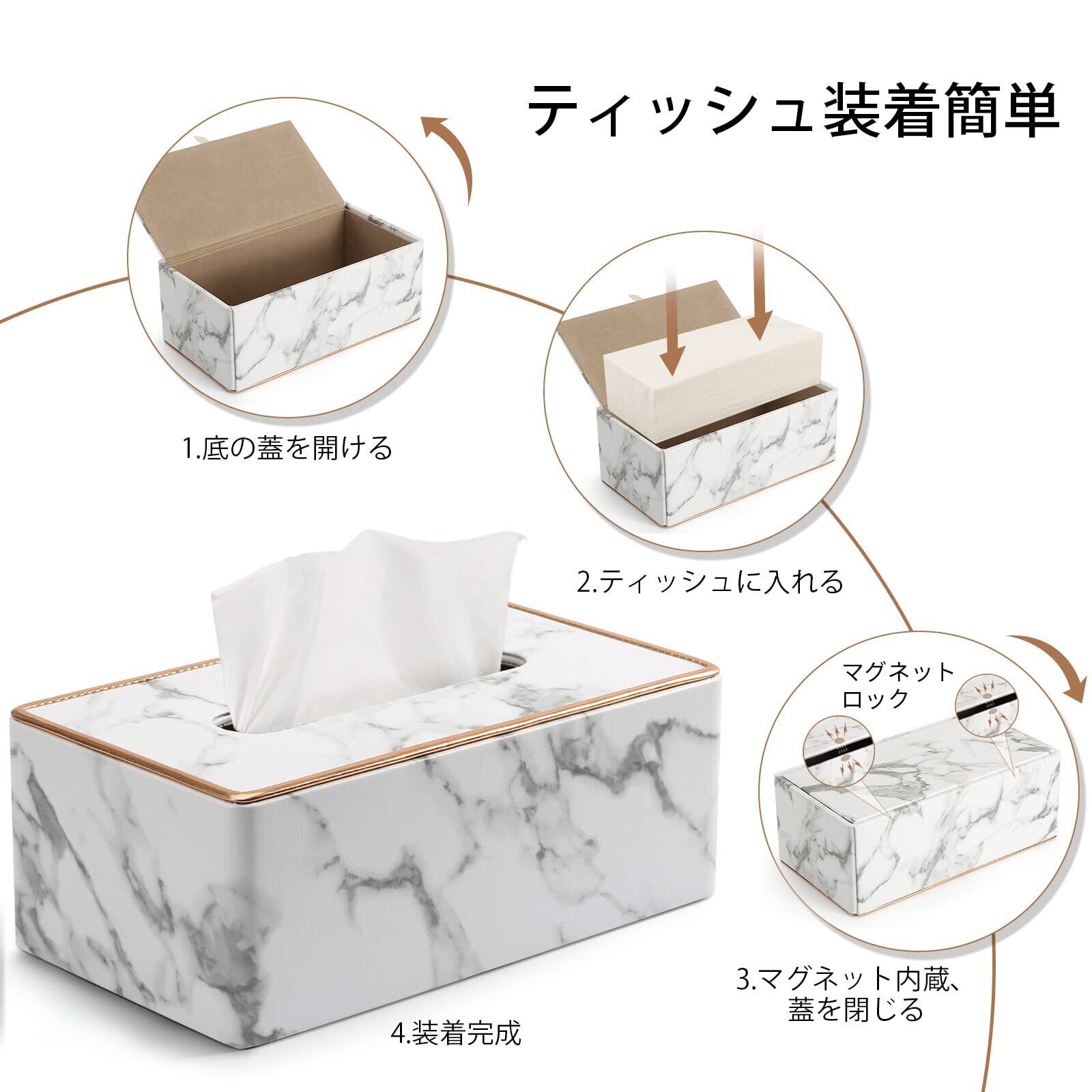 「使用簡単」ティッシュボックスは底蓋を開けて、簡単にティッシュペーパーをセットできます。底蓋はマグネット開閉式で、ティッシュの入れ替えにも気軽に行えます。磁力は強めですので、さらに持ち上げても中身が落ちないです。取り出し口が広くてティッシュをさっと取り出せます。