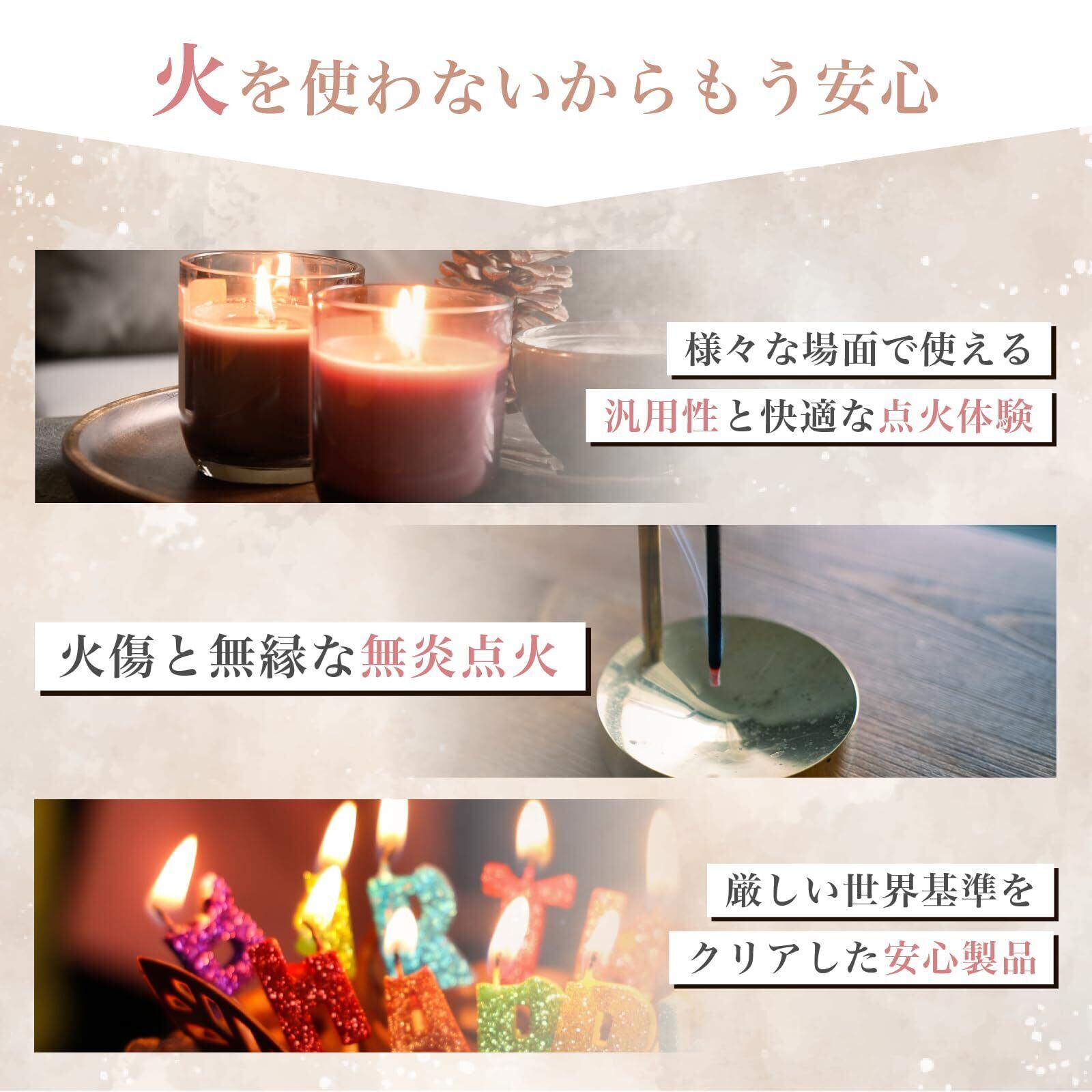 電子ライター 火が出ない 充電式 キャンドルライター USB-TypeC プラズマライター キャンドル 線香 ローソク (ホワイト)