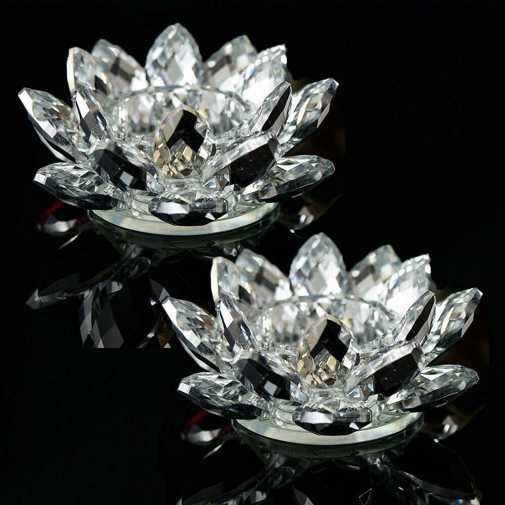 クリスタルガラス 蓮 ロータス クリスタル ローソク立て ガラス 置物 燭台 蝋燭立て 花 キャンドル ろうそく ランプ ホルダー 蓮の花 インテリア 輪灯 仏前 神具 誕生日 金運 癒し け 勝負 恋愛 幸運 飾り (クリア 2個)