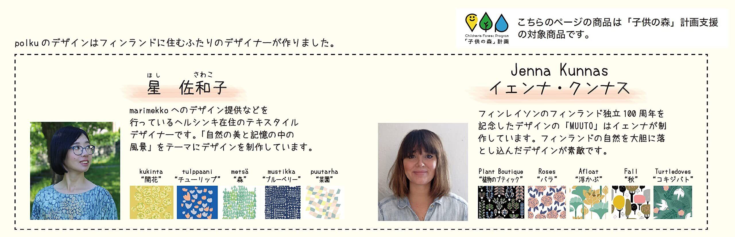 【polku/ポルク】「小道、森の中にあるような細い道」という意味で、フィンランドの自然の中を散歩するようにデザインを楽しんでもらいたいという意味を込めて付けました。ロゴは森のイメージからデザインしています。