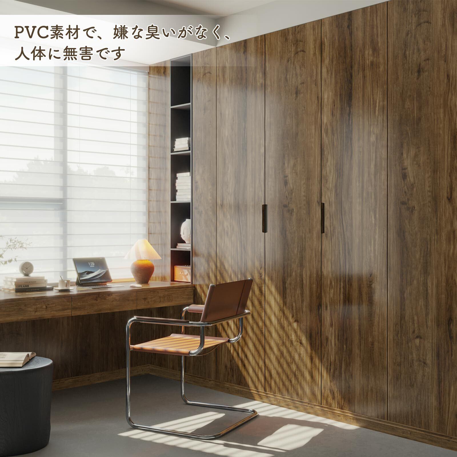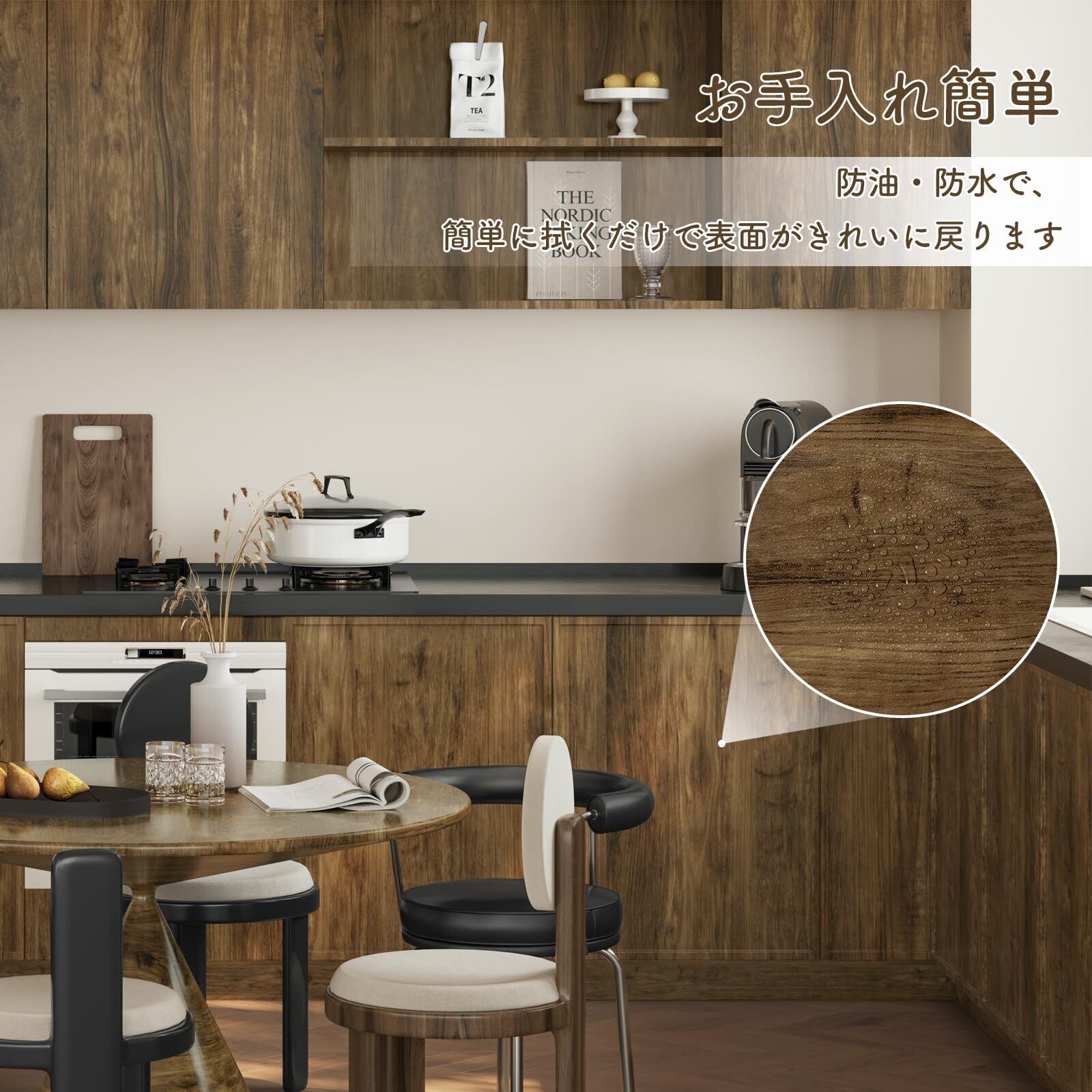 practicalWs 壁紙シール リメイクシート 木目 褐色 壁紙 のり付き 防水 防汚 耐熱 剥がせる壁紙 ダークブラウン 木目調 多用途キッチン、キャビネット、テーブル、ドア、 家具のDIY 30cmX2m