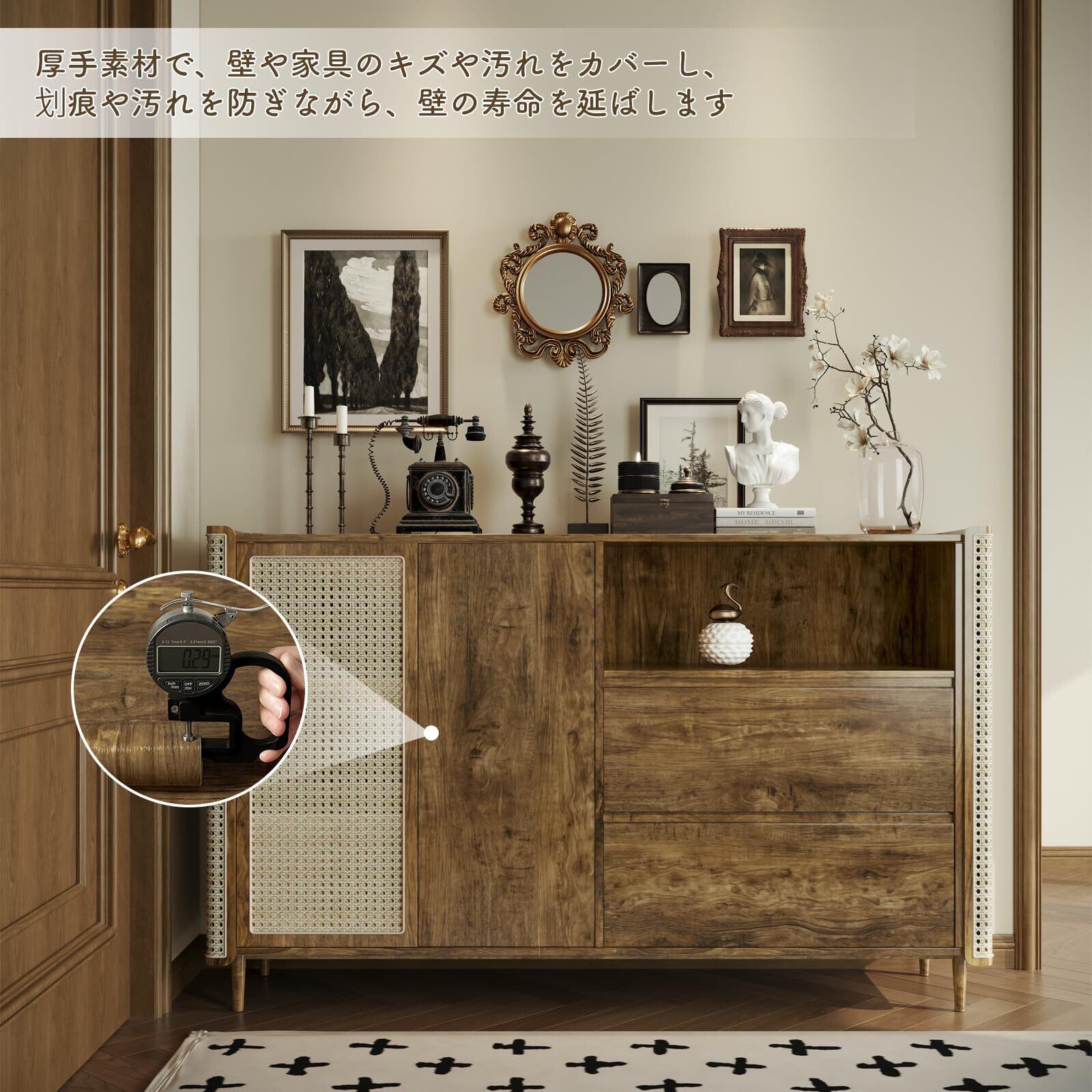 高品質素材:1.耐スクラッチ、耐摩耗性に優れた不浸透性基材を使用します。家具の元の色をしっかりカバーします。汚れが目立ちにくいのが特徴です。 2.水性接着剤採用で、色あせ、臭いなし。貼り付ける時間が長くなるほど接着力が強くなり、剥がれにくい設計です。壁紙を貼る際の注意点:ほこりや水汚れがないように、貼る前に壁をしっかり掃除してください。これにより、壁紙の寿命が延び、接着力も向上します