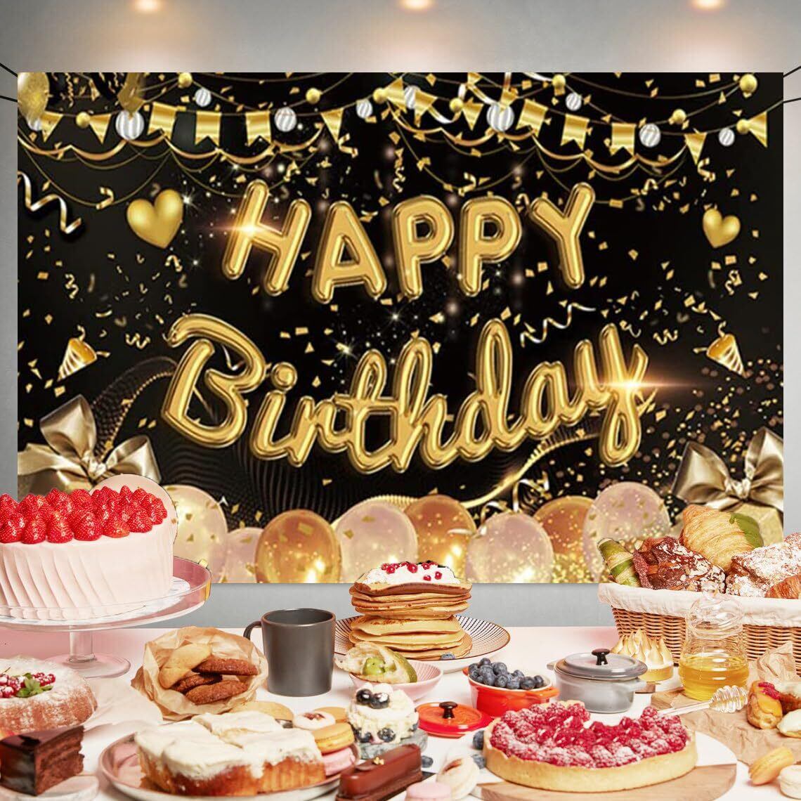 ブラックゴールド バースデー タペストリー 誕生日 飾り付け おしゃれ 壁掛け 写真背景 Happy Birthday パーティー フォトポスター おうちスタジオ 180x120cm