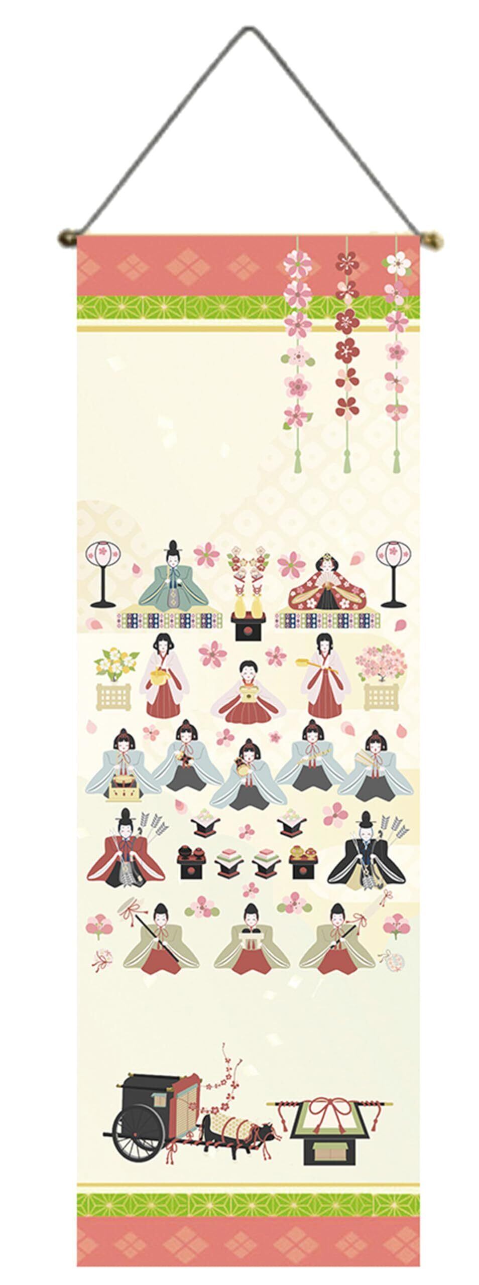 next.design タペストリー 細タペストリー 掛け軸 雛祭り お雛様 桃の節句 桃の花 梅 桜 春 女の子 人形 お祝い 初節句 飾り 壁掛け 壁面 吊るし 飾り ミニ コンパクト 室内用 おしゃれ インテリア (デザイン1)