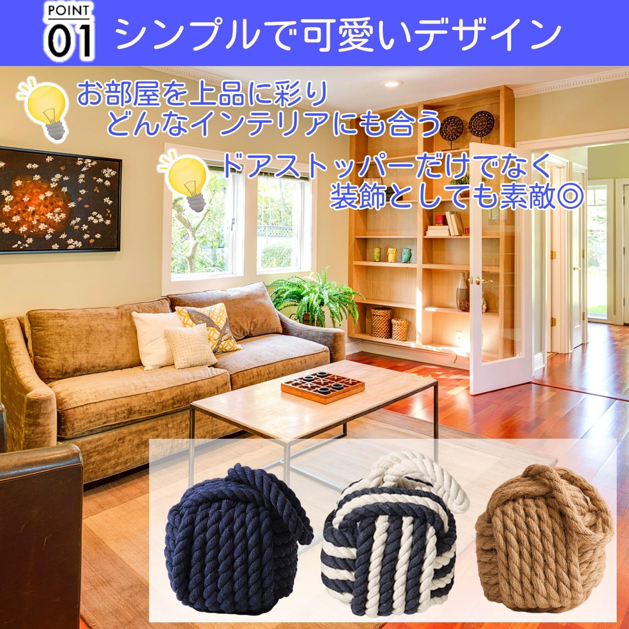 【柔らかい麻縄で床を優しく保護】天然素材の麻縄を使用しているので、ドアストッパーが床に直接触れても傷をつけることがありません。木材、タイル、カーペットなど、さまざまな床材に優しく対応します。ナチュラルな風合いが空間に温かみを加え、インテリアとしても心地よい雰囲気を演出します。