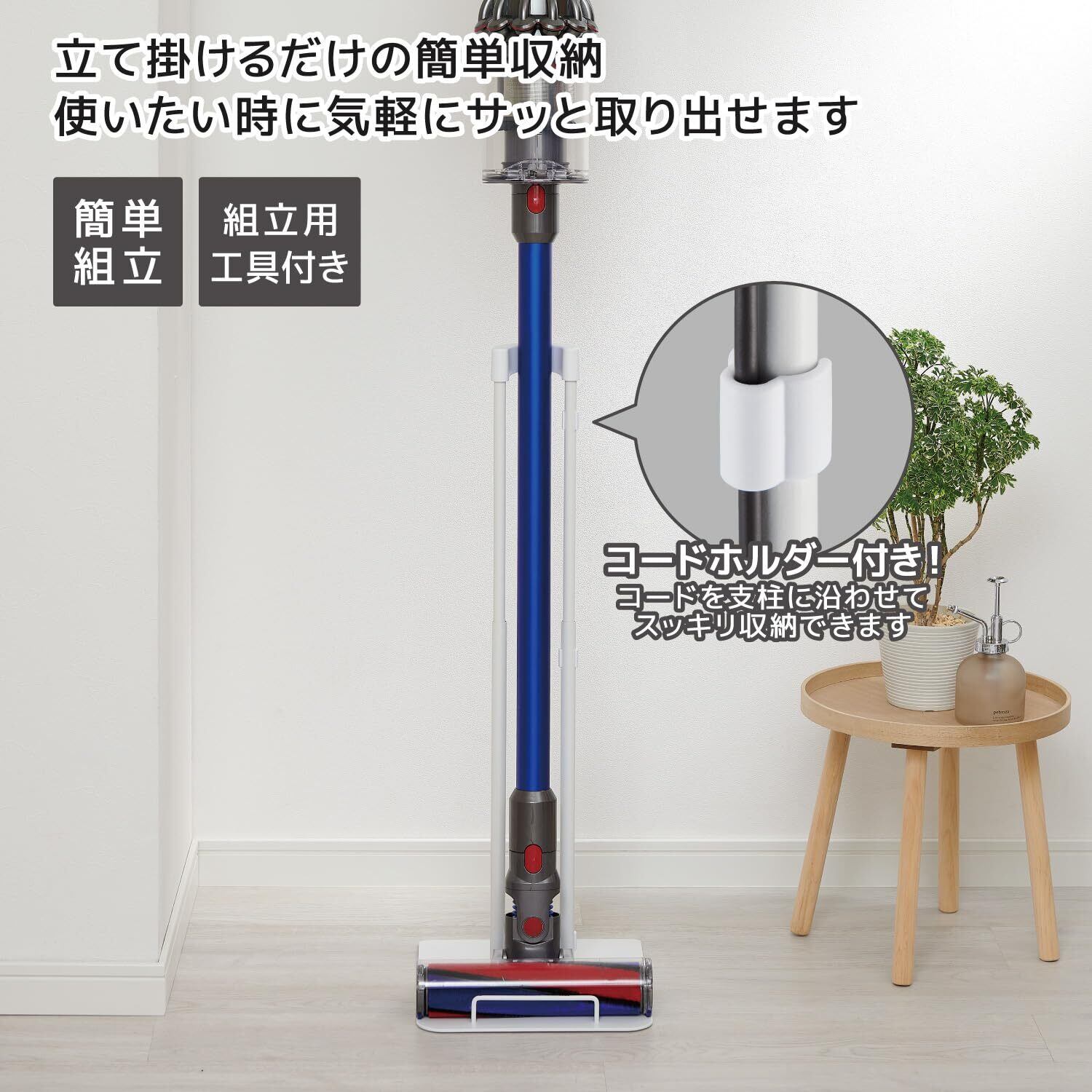 ベルカ(Belca) 立て掛けるだけの簡単収納! クリーナースタンド ホワイト 幅25×奥行30×高さ50~70cm 立て掛けタイプ 掃除機スタンド コードホルダー付き CS-TNWE