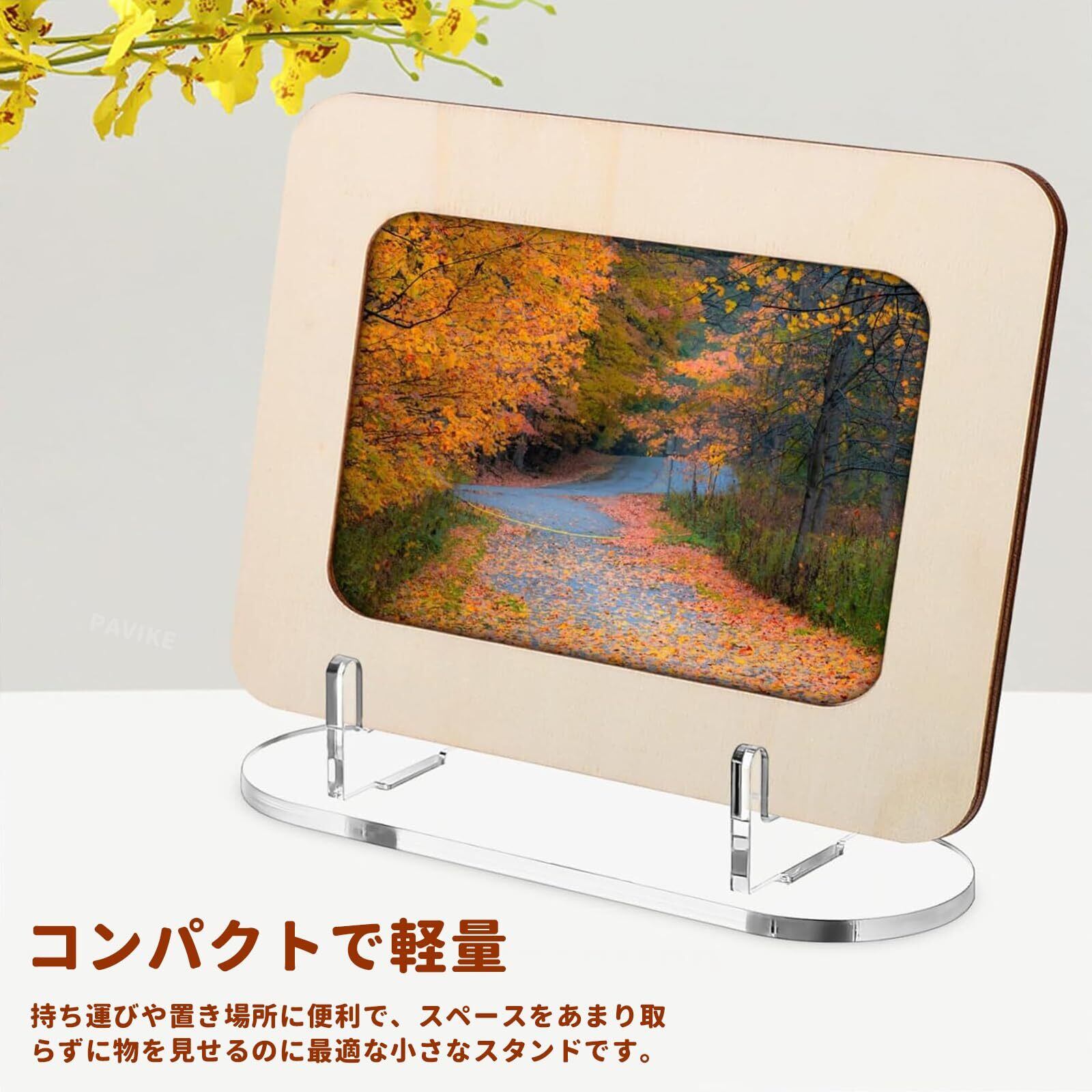 【透明デザイン】透明デザインなので、デスクトップに置いても周囲の物や空間に干渉しません。スタンドが目に立たず、展示品の魅力が引き立ちます。写真、カード、バッジ、CDなど、あらゆるものを最適に展示できます。最良の視覚効果を得るために、使用前に必ず表面の保護フィルムを剥がしてください。