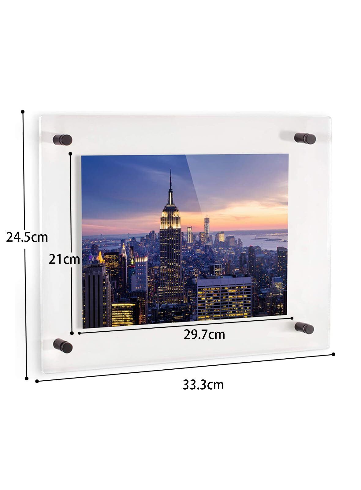 【製品仕様】写真収納サイズは21cm×29.7cm、フォトフレームサイズは24.5cm×33.3cm 。A4サイズ。 厚みは3mm+3mm。写真立てに分厚い証明書を入れないでください。見た目が悪くなります。