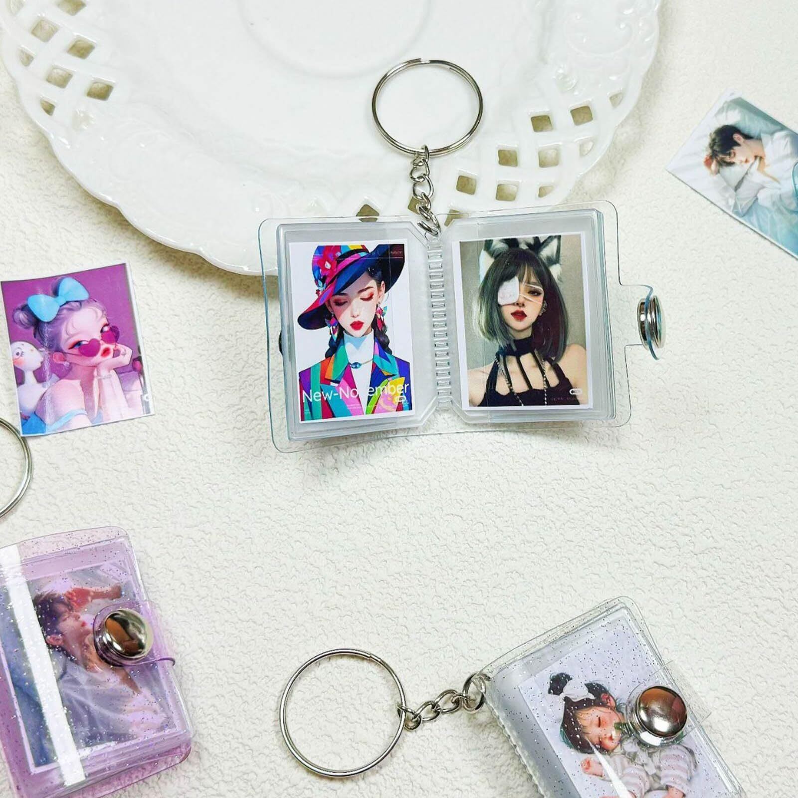 多用途収納対応:フォトアルバムキーチェーンとして写真だけでなく、フォトコーナーシール、名刺、推しカードも収納可能,ミニフォトアルバムの汎用性を最大化します。