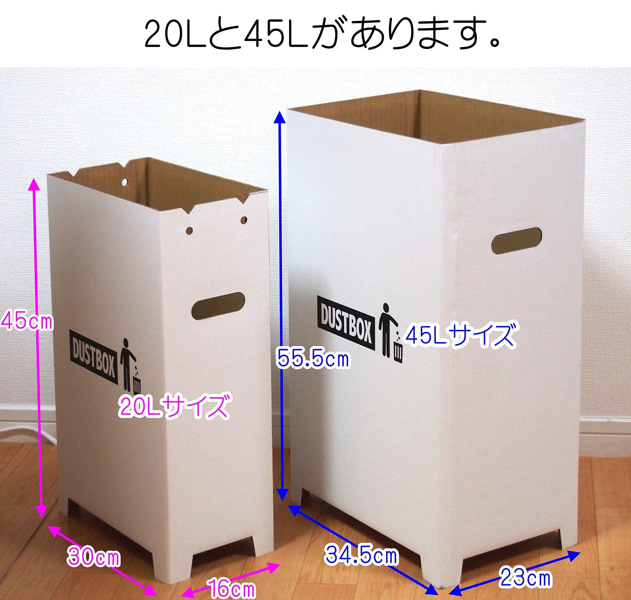 サイズ:幅34.5×奥行23×高55.5cm(組立時)、 容量:約45リットル 、 材質:撥水加工 ダンボール、 原産国:日本、 セット内容:3個セット
