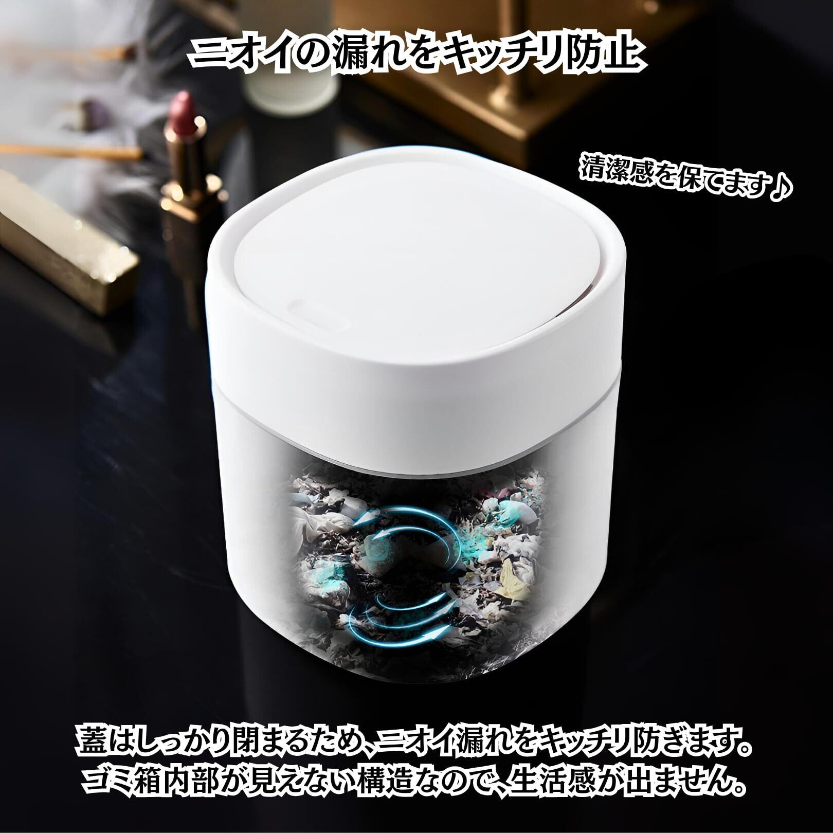 Charmoon 卓上ゴミ箱 ふた付き ワンプッシュ開口 容量2L コンパクト おしゃれ (ホワイト)