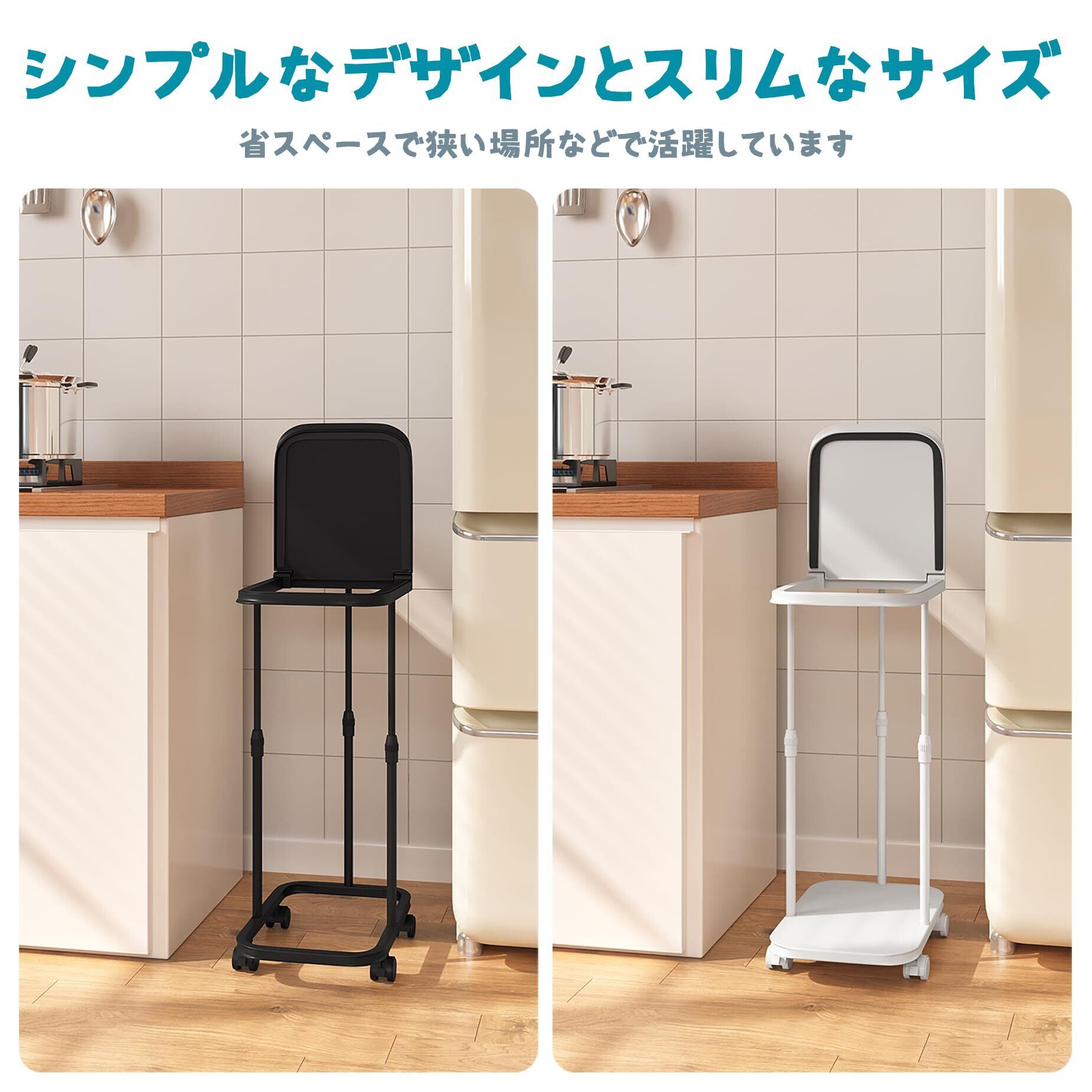 【容量を自由に調整可能】この商品の高さは47~78cm(キャスター・アジャスター高さは別)の間で段階なく自由調節でき、ゴミの収容量を拡大可能で、20L~90Lのゴミ袋に対応し、便利性に優れています。ゴミは日々の生活で驚くほど溜まりますが、回収日しか捨てられないルールがあるので、箱型のゴミ箱と違ってゴミ袋の最大容量まで使えます。このゴミ袋ホルダーを使うと、使い勝手がすごくいいです!