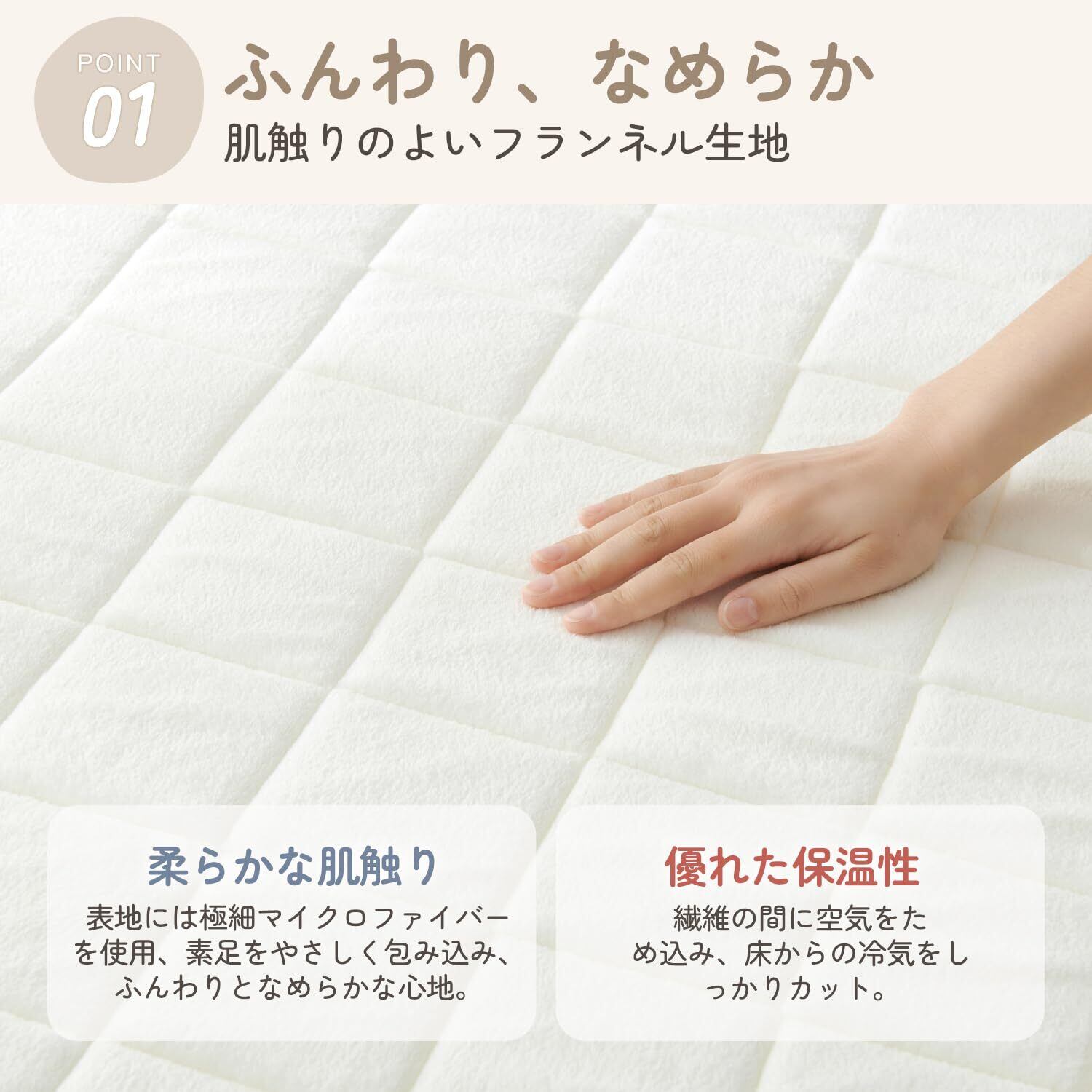 【フランネル生地・一年中快適】表面には高密度フランネル素材を使用、柔らかくなめらか肌触りで、素足でもふんわり気持ちいい使用感。寒い季節はもちろん、冬は床暖房・ホットカーペットにも対応。春夏はサラッと快適で、オールシーズン活躍!