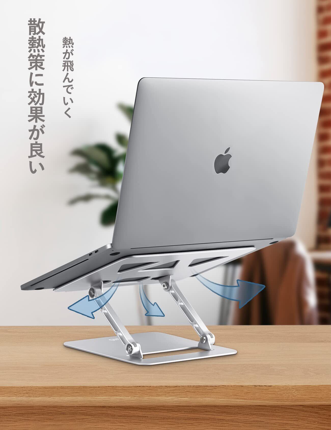 アオビホ(Aoviho) ノートパソコンスタンド PCホルダー 折りたたみ式 人間工学 無段階高さ&角度調整可能 猫背&姿勢改善 放熱対策 滑り止め 在宅仕事 つくえ 机 省スペース 軽量アルミ製 ZOOM会議 Macbook Air/Macbook Pro/iPad/15.6インチまでのノートパソコンやタブレットに対応 (銀 シルバー)
