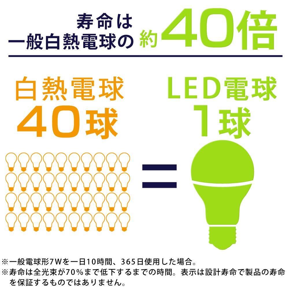 【寿命】一般白熱電球の約40倍!LED電球1球の寿命は、白熱電球40球に相当する。