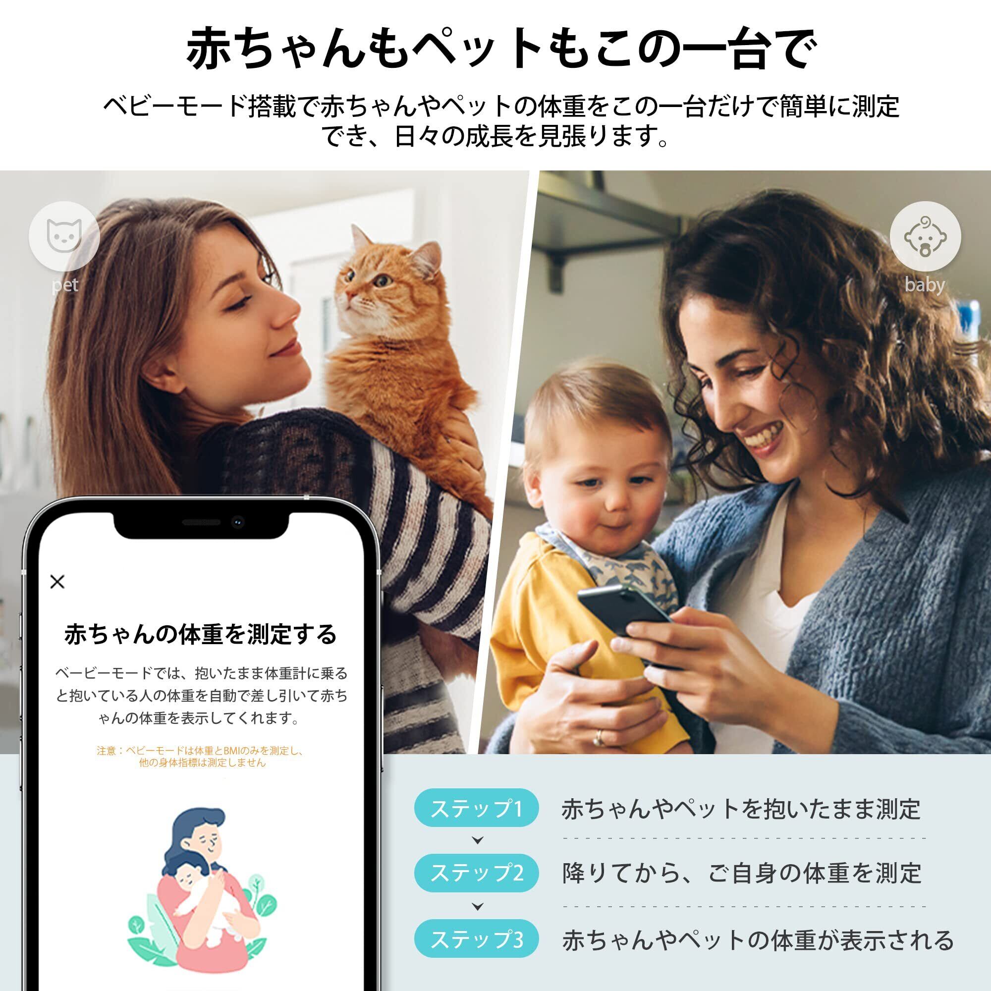 アプリの特徴:自動転送、データグラフ化、運動と食事のアドバイス、計画を設定、ベビーモード、16種類言語対応