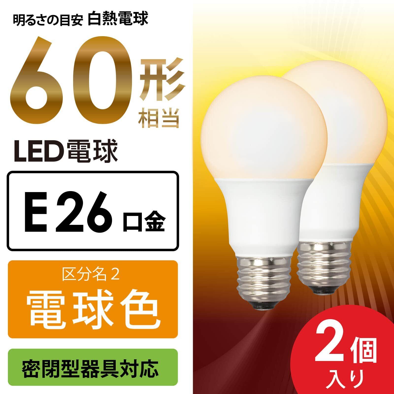 【 特 長 】● 全光束840ルーメン、白熱電球60形相当の明るさ● 光の広がり約280°の全方向タイプ● 密閉形器具対応● 省エネ法2027年度目標基準達成● 電球色● 口金はE26● LED5年保証対象商品● 2個入り